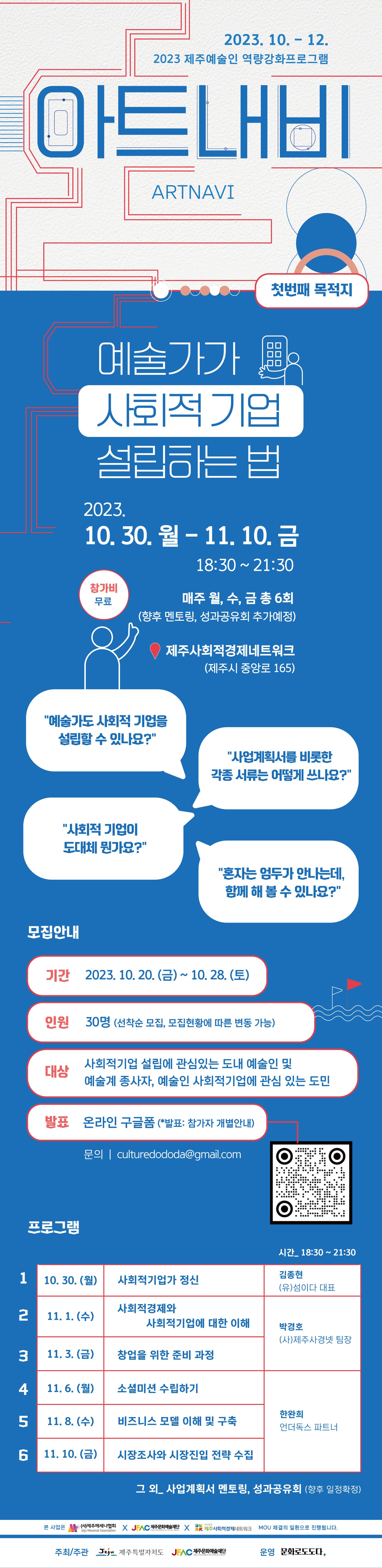 2023 제주예술인 역량강화 프로그램 [ 아트내비 ] 첫번째, 예술가가 사회적 기업 설립하는 법