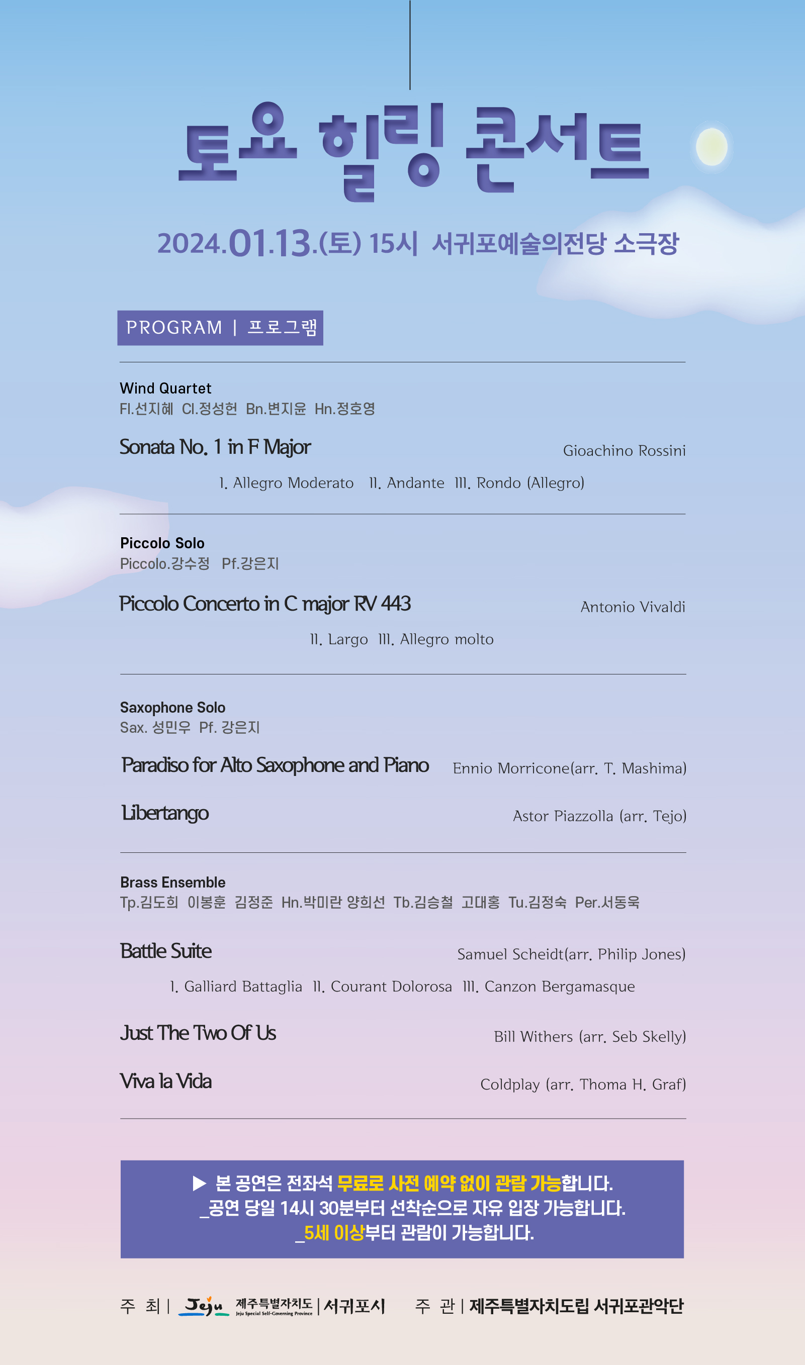 제주특별자치도립 서귀포관악단 2024 1월 토요 힐링 콘서트