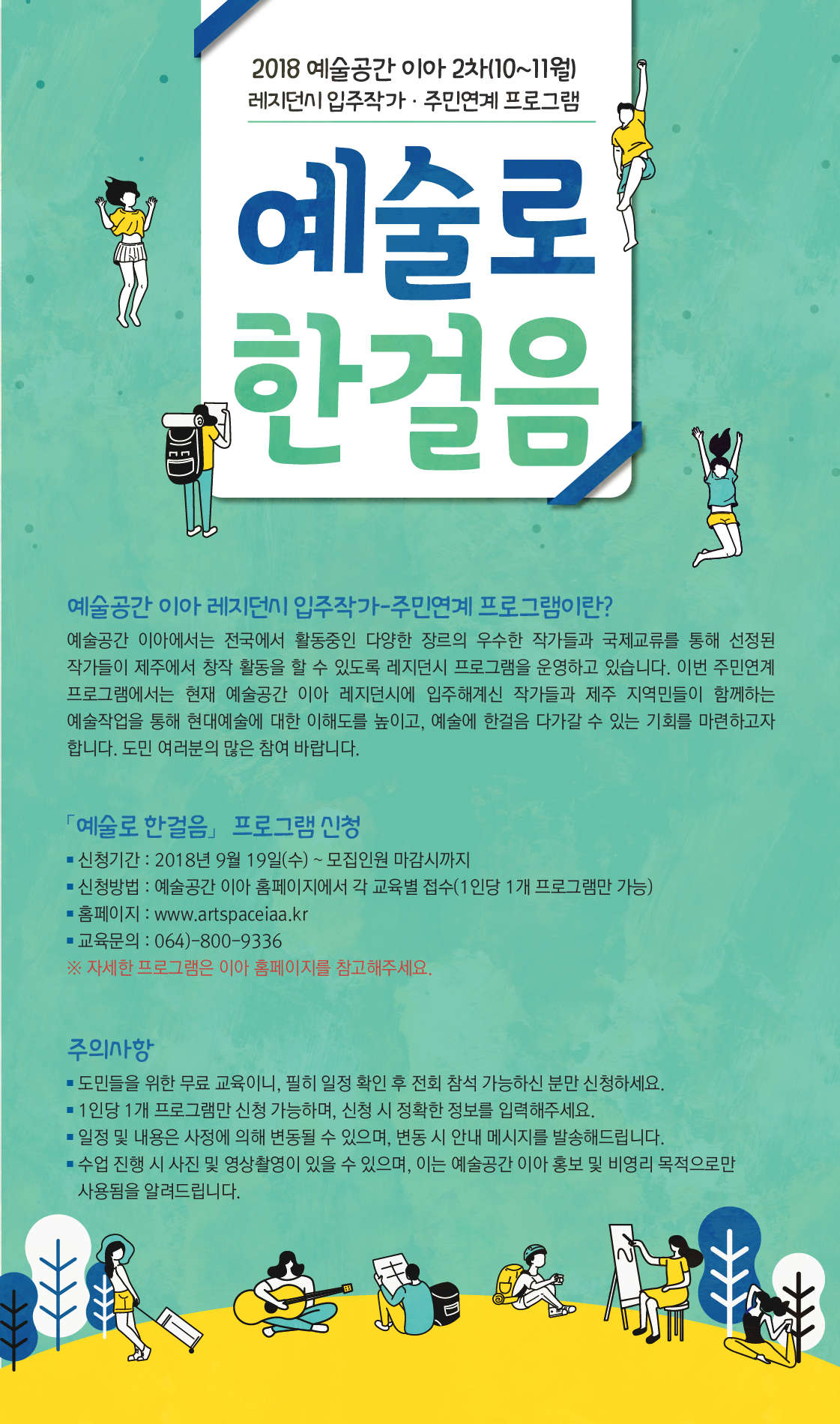 2018 예술공간 이아 2차(10~11월) 레지던시 입주작가-주민연계 프로그램 [예술로 한걸음] 참가자 모집