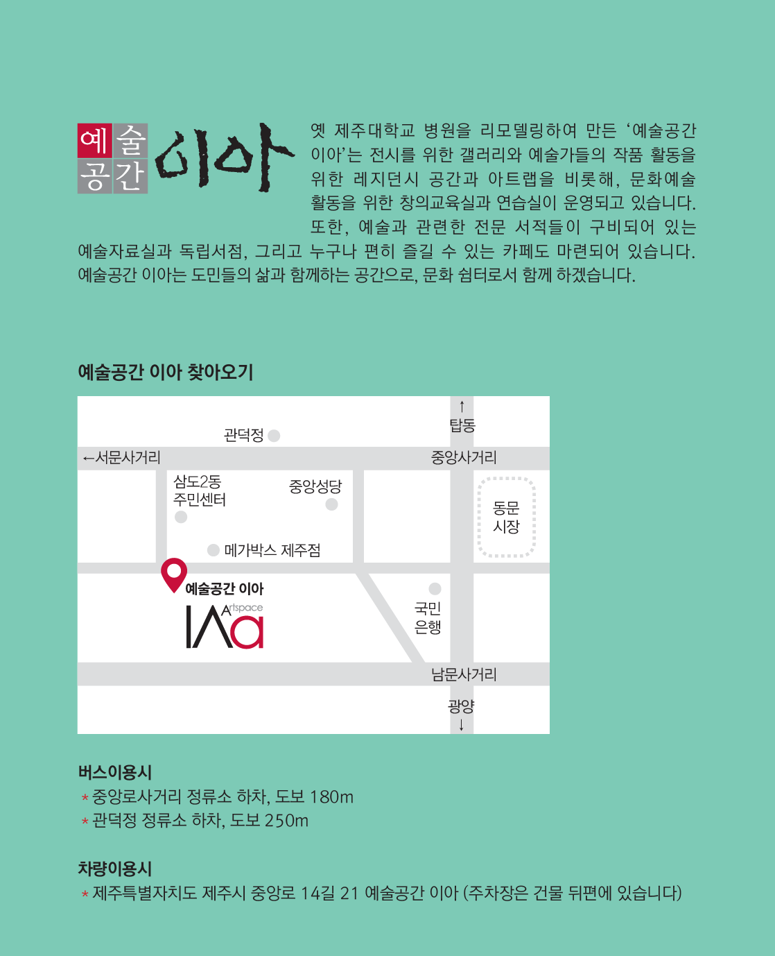 - 주소 (63169) 제주특별자치도 제주시 중앙로14길 21 예술공간 이아