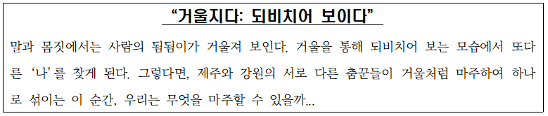 - 공연명 : 제주-강원특별자치도립무용단 교류공연 '거울 진(眞) 춤'