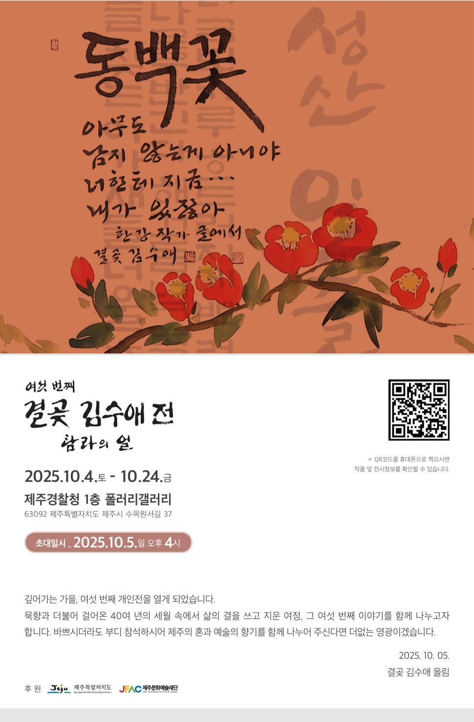 제주특별자치도 도지사상, 제주특별자치도 교육감 상, 제주특별자치도 제누시장상 수상, 제2회 한글사랑서예대전 최우수상, 한국예술대제전 대상, 대한민국 미술대전 특선 2회 입선4회 동 초대작가(2004), 제주도미술대전 연특선 4회(1992~1995), 동 초대작가(1995년)