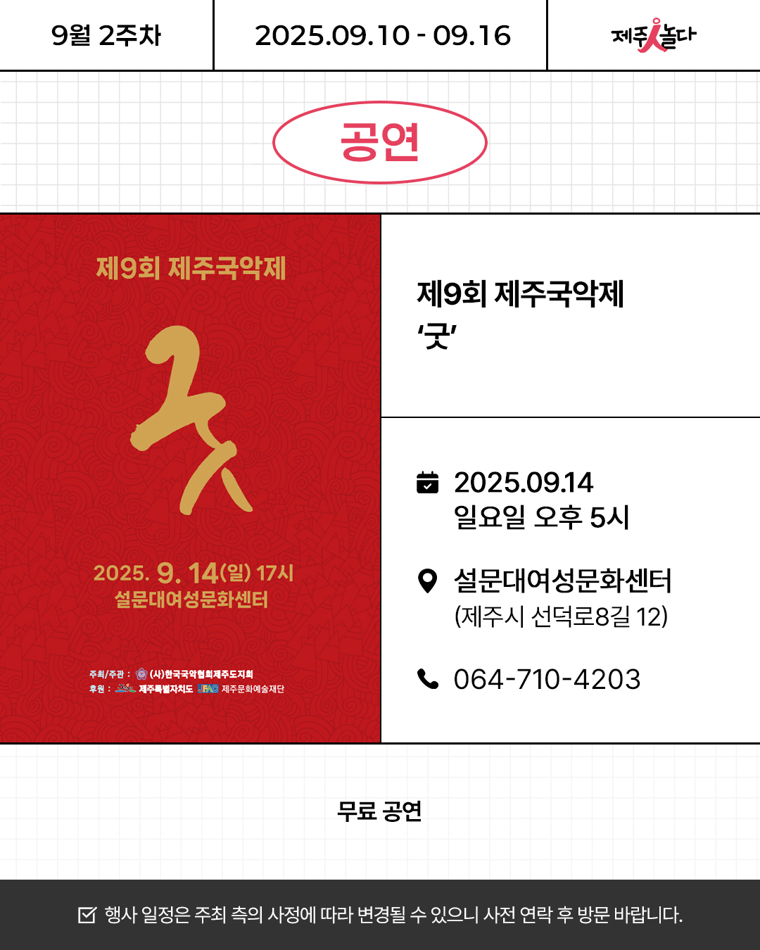 [카드뉴스] 2025년 9월 둘째 주 문화예술 행사소식