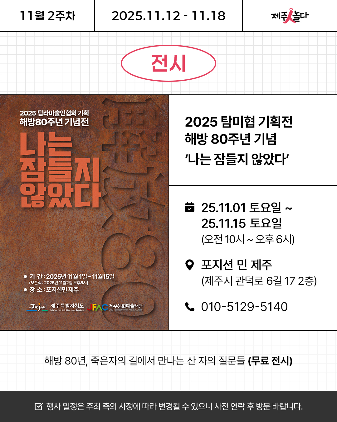 [카드뉴스] 2025년 11월 둘째 주 문화예술 행사소식