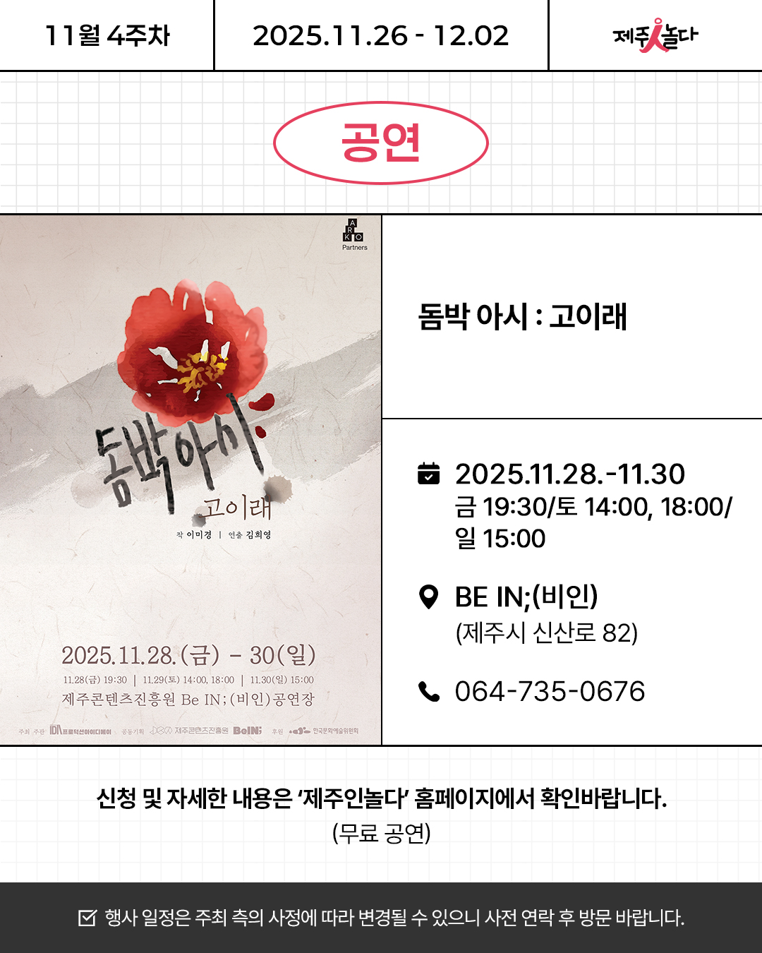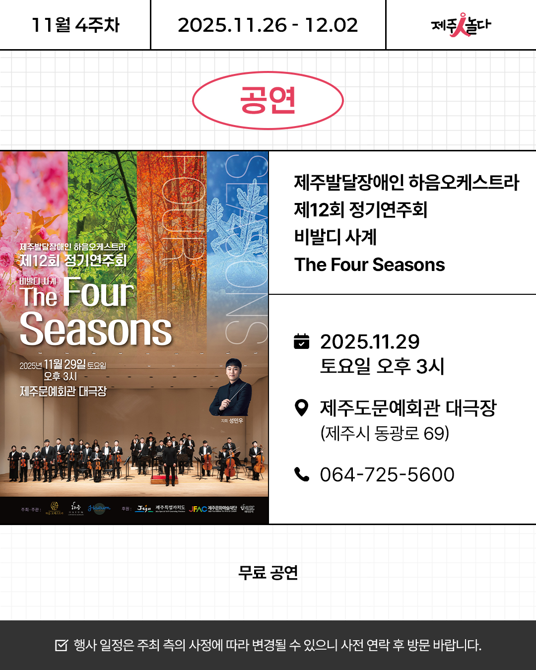 [카드뉴스] 2025년 11월 넷째 주 문화예술 행사소식