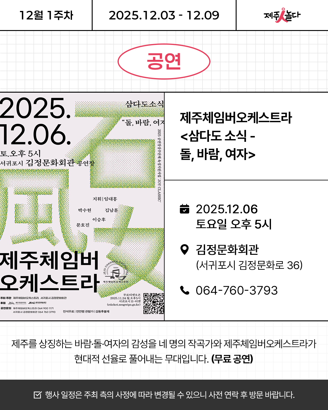 [카드뉴스] 2025년 12월 첫째 주 문화예술 행사소식