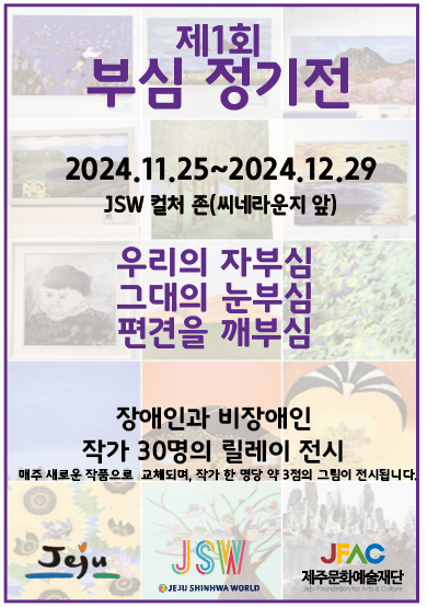 제주문화예술재단의 장애예술창작활동지원으로 신화월드 메리어트과 G층 씨네라운지 앞에서 전시가 열립니다.