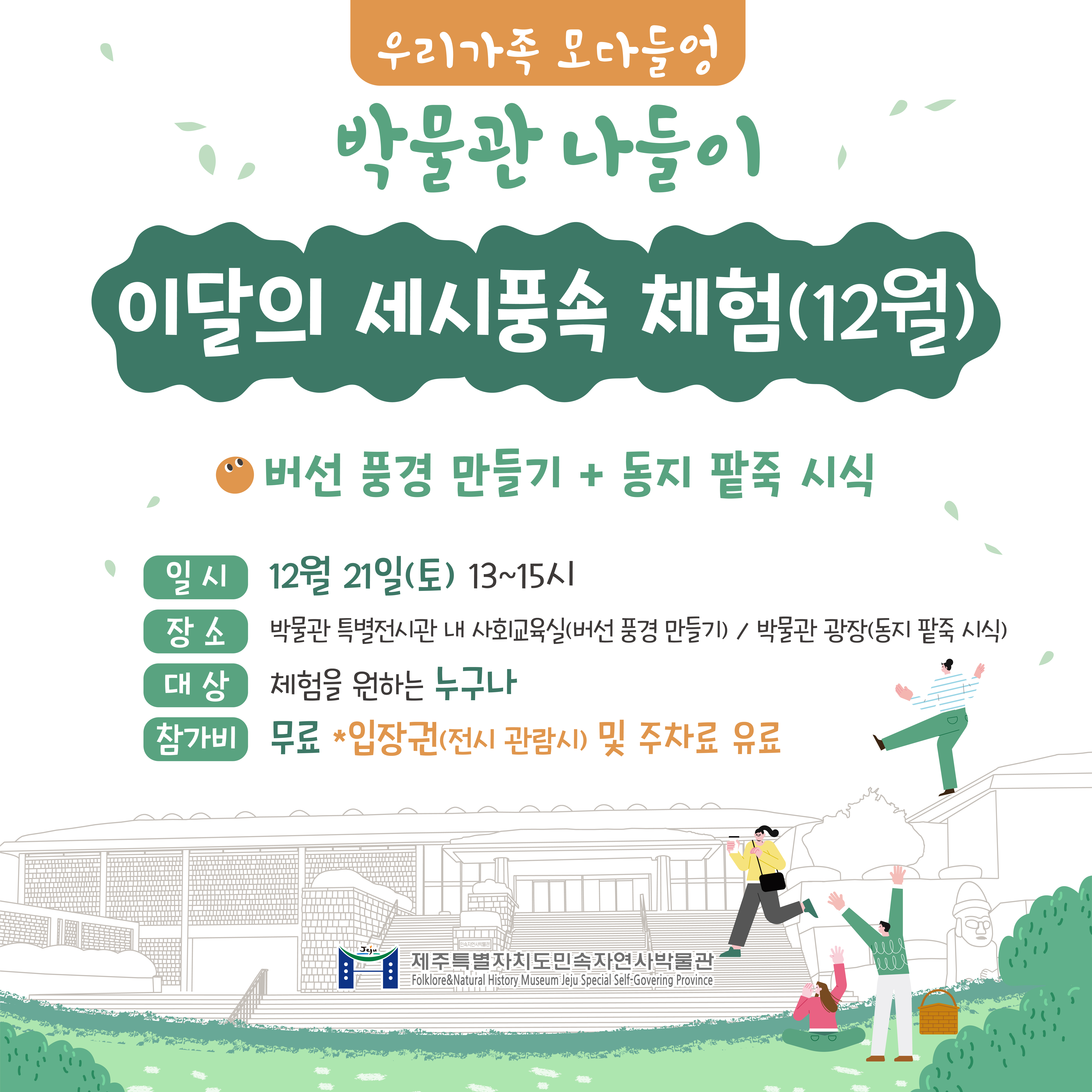 ※장소 : 민속자연사박물관 광장(동지 팥죽 시식) / 특별전시관 내 사회교육실(버선 풍경 만들기)
