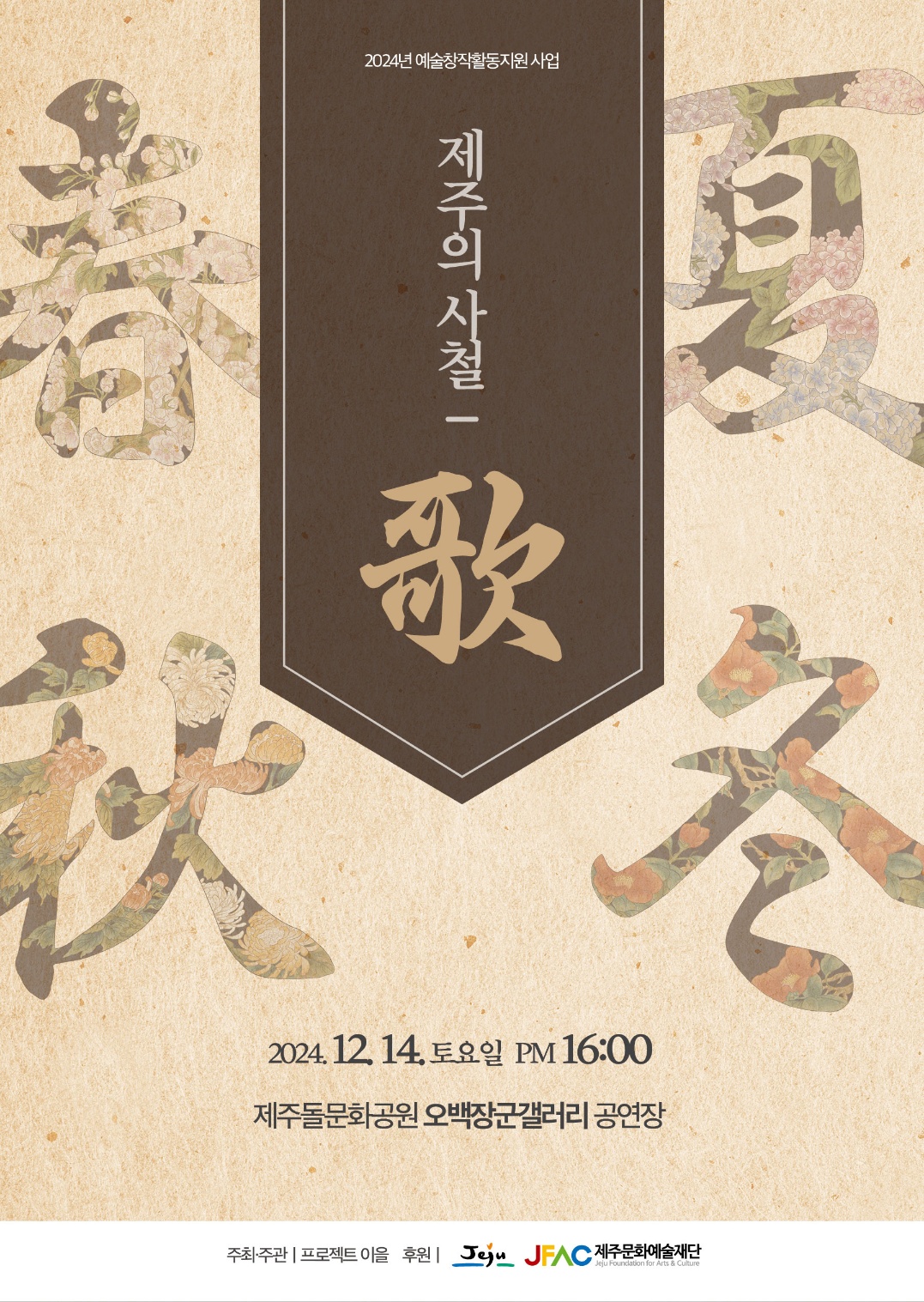 민화- ‘문자도-춘하추동’에 제주의 사계절을 담은 작업과, 이를 활용한 무대연출 속에서 민요와의 어울림을 한 자리에서 보고, 듣고, 느껴보자.