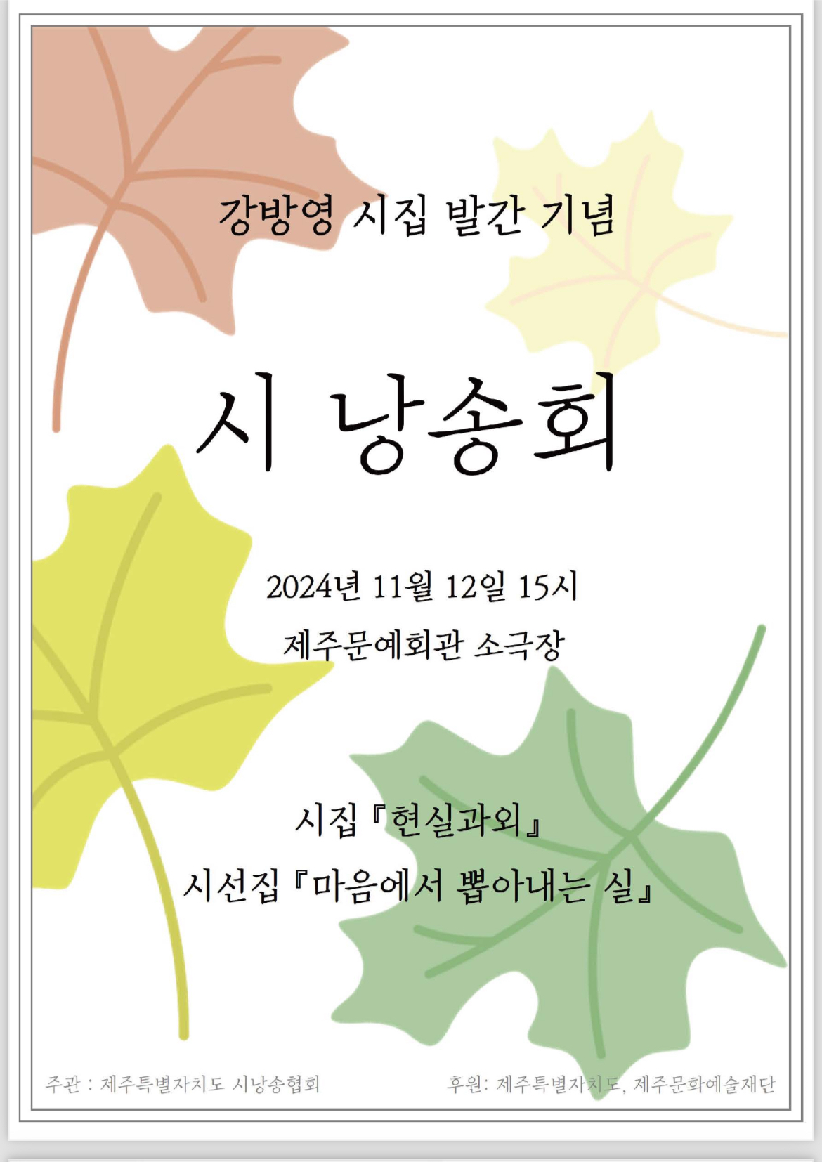 강방영 시선집『마음에서 뽑아내는 실』, 강방영 시집『현실 과외』발간 및 기념 시 낭송회