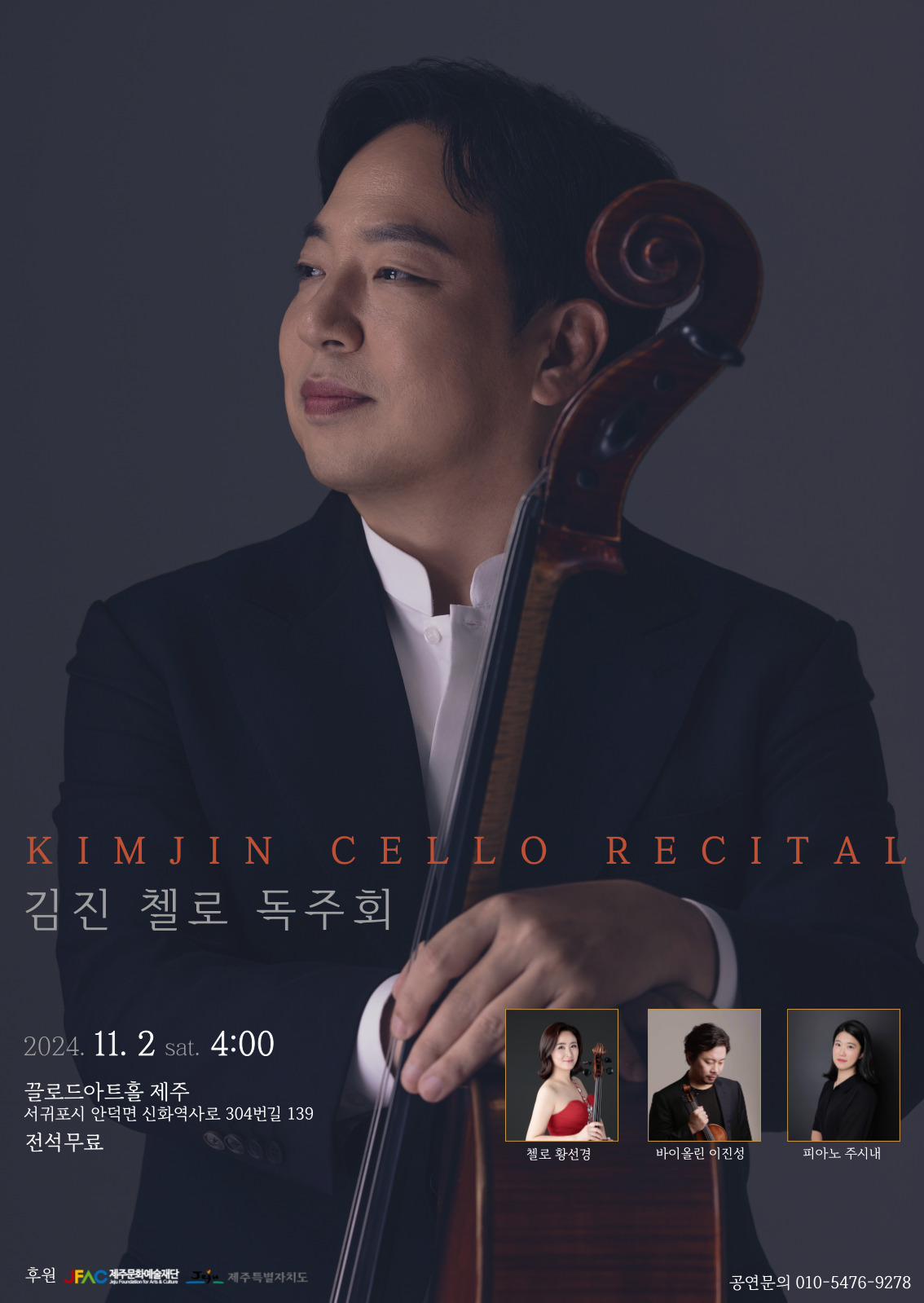 제주에서 활동하는 첼리스트 김진의 첼로독주회가 11월2일 토요일 오후4시에