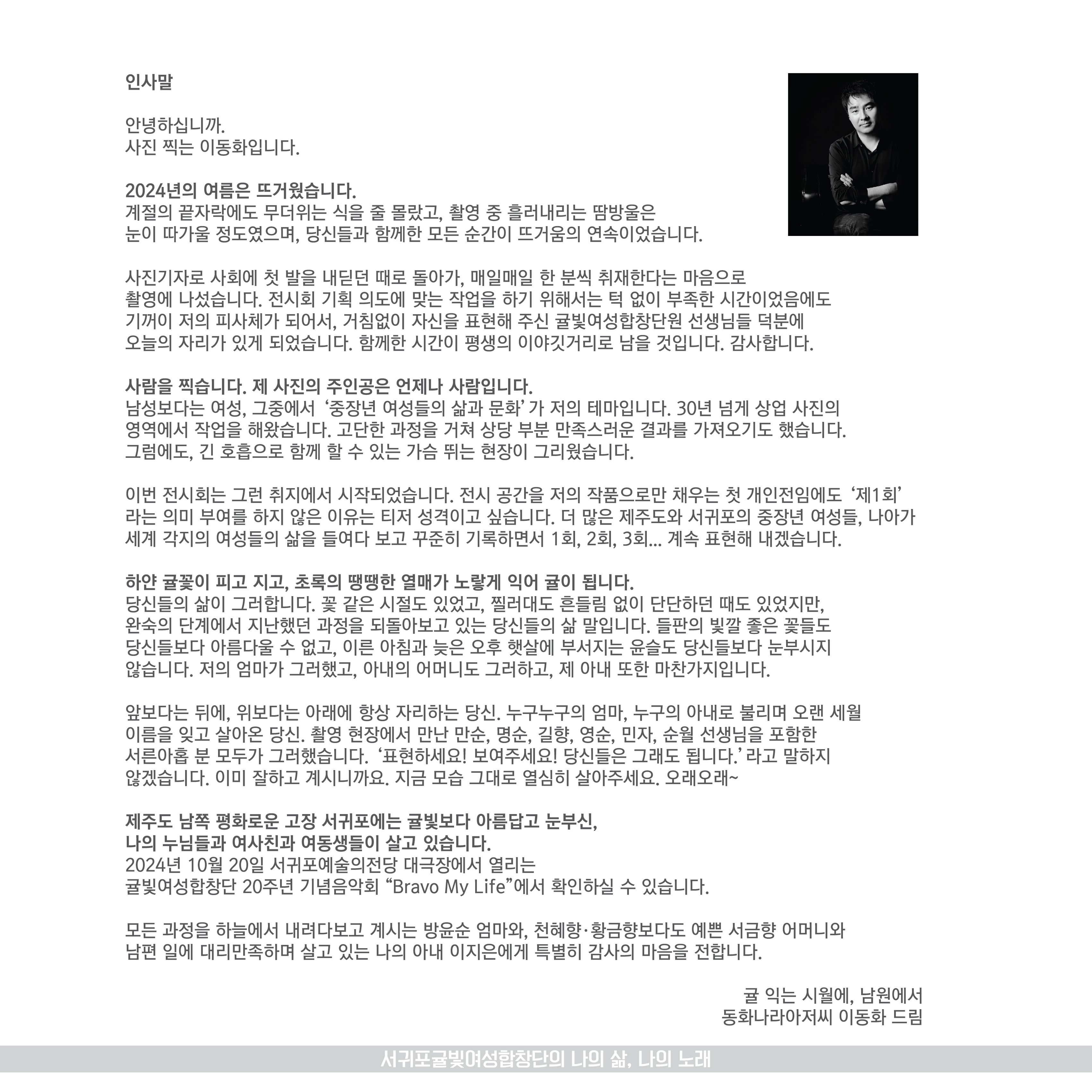 이동화 사진전 LEE DONGHWA SOLO EXHIBITION [서귀포귤빛여성합창단의 나의 삶, 나의 노래]