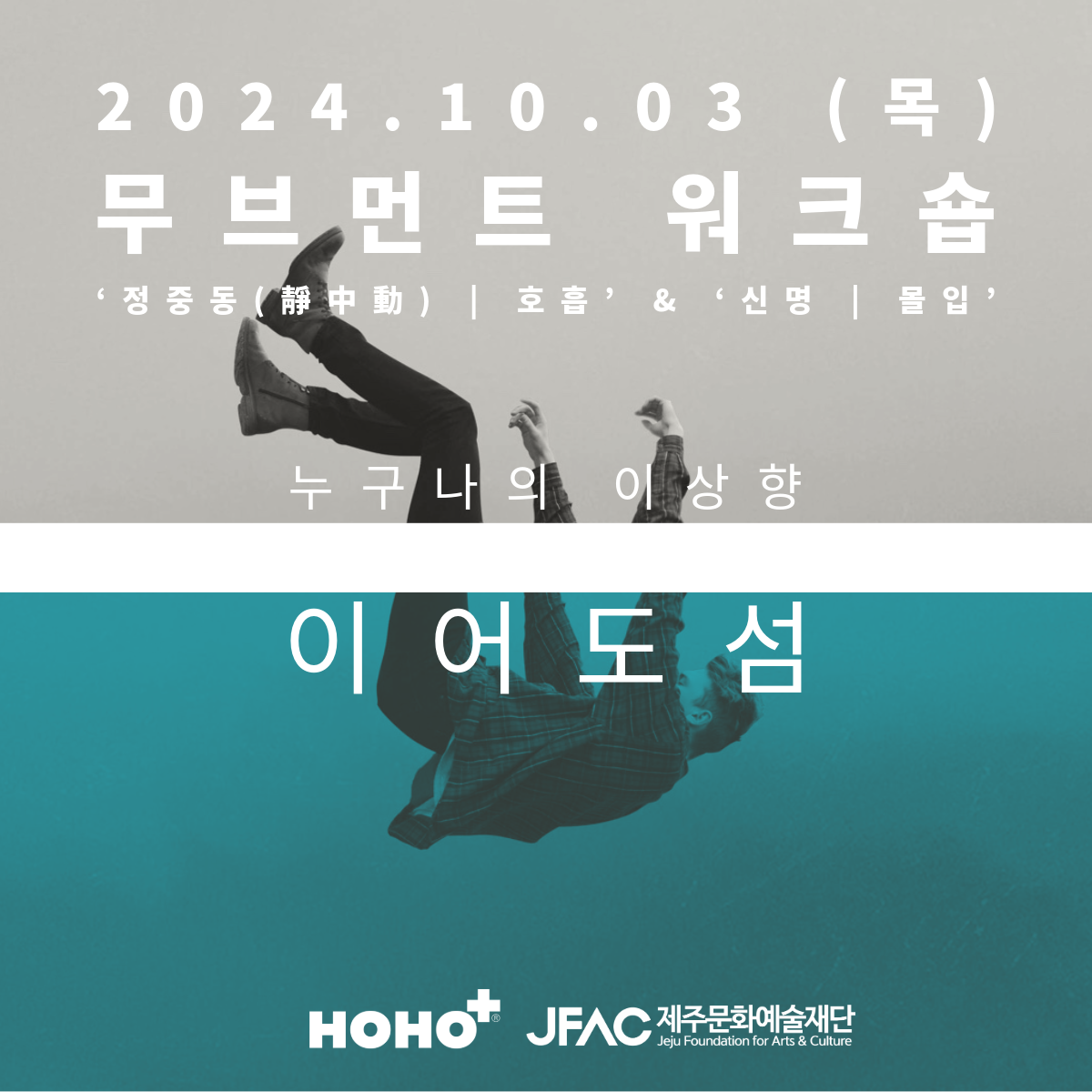 이번 워크샵이 각 장르의 경계를 확장하는 기회가 되길 바랍니다. 환상의 섬 이어도처럼, 누구나 자신만의 '이어도'를 찾아가는 여정을 함께하며 다양한 아티스트들과 자신만의 창의적 움직임을 찾아보세요. 워크샵을 통해 12월 공연에 함께할 수 있는 특별한 여정의 시작입니다.