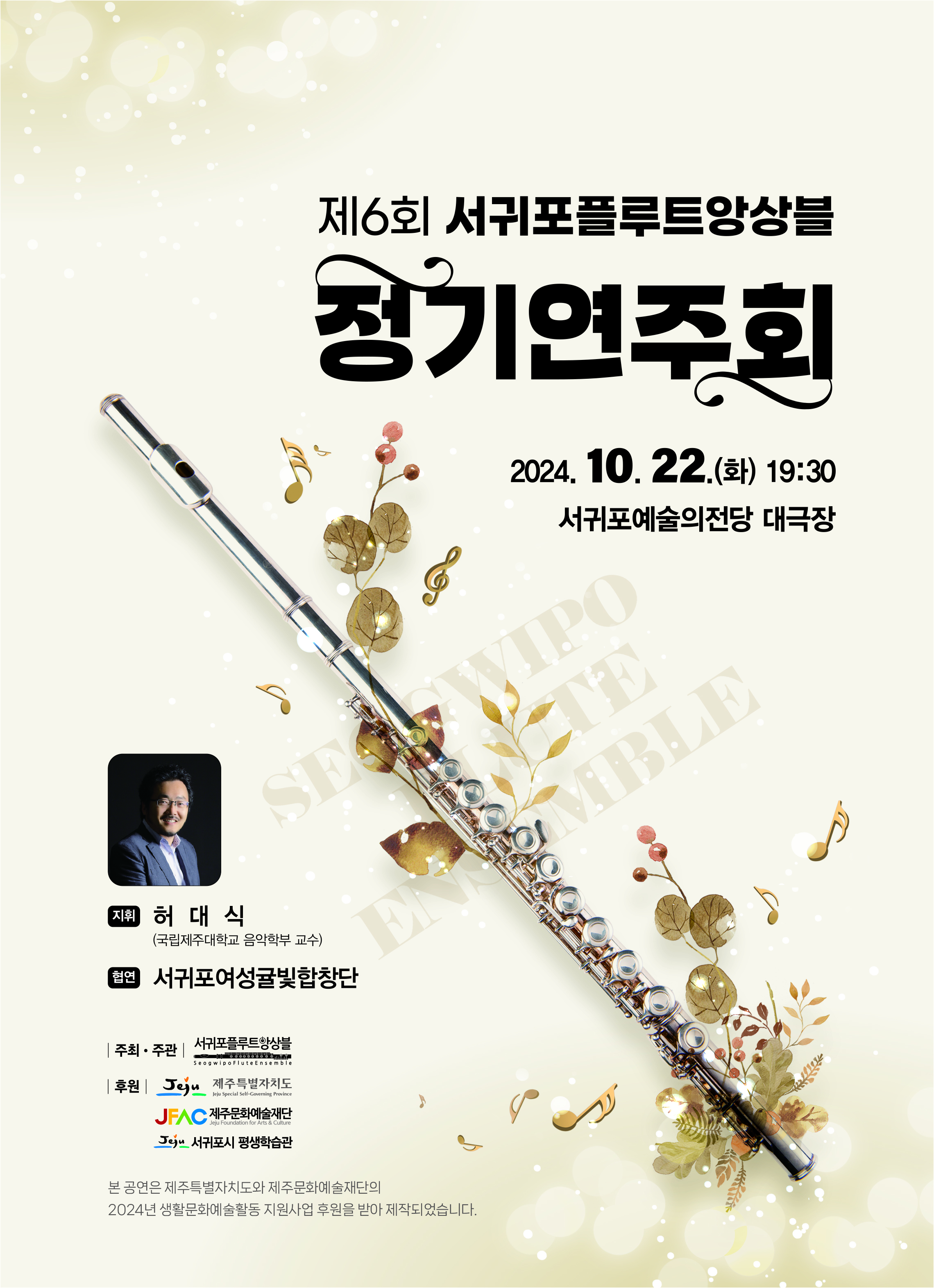 저희 서귀포플루트앙상블은 제6회 서귀포플루트앙상블 정기연주회를 통해 플루트앙상블의 매력과 서귀포를 대표하는 귤빛여성합창단과의 협연으로 아마추어 음악 활동의 불모지인 서귀포시에 신선한 바람을 일으키길 기대하고 있습니다. 아름다운 플루트의 선율과 귤빛여성합창단의 화음은 어디서도 볼 수 없었던 특별하고 아름다운 연주회가 될 것이라고 확신하고 있습니다.