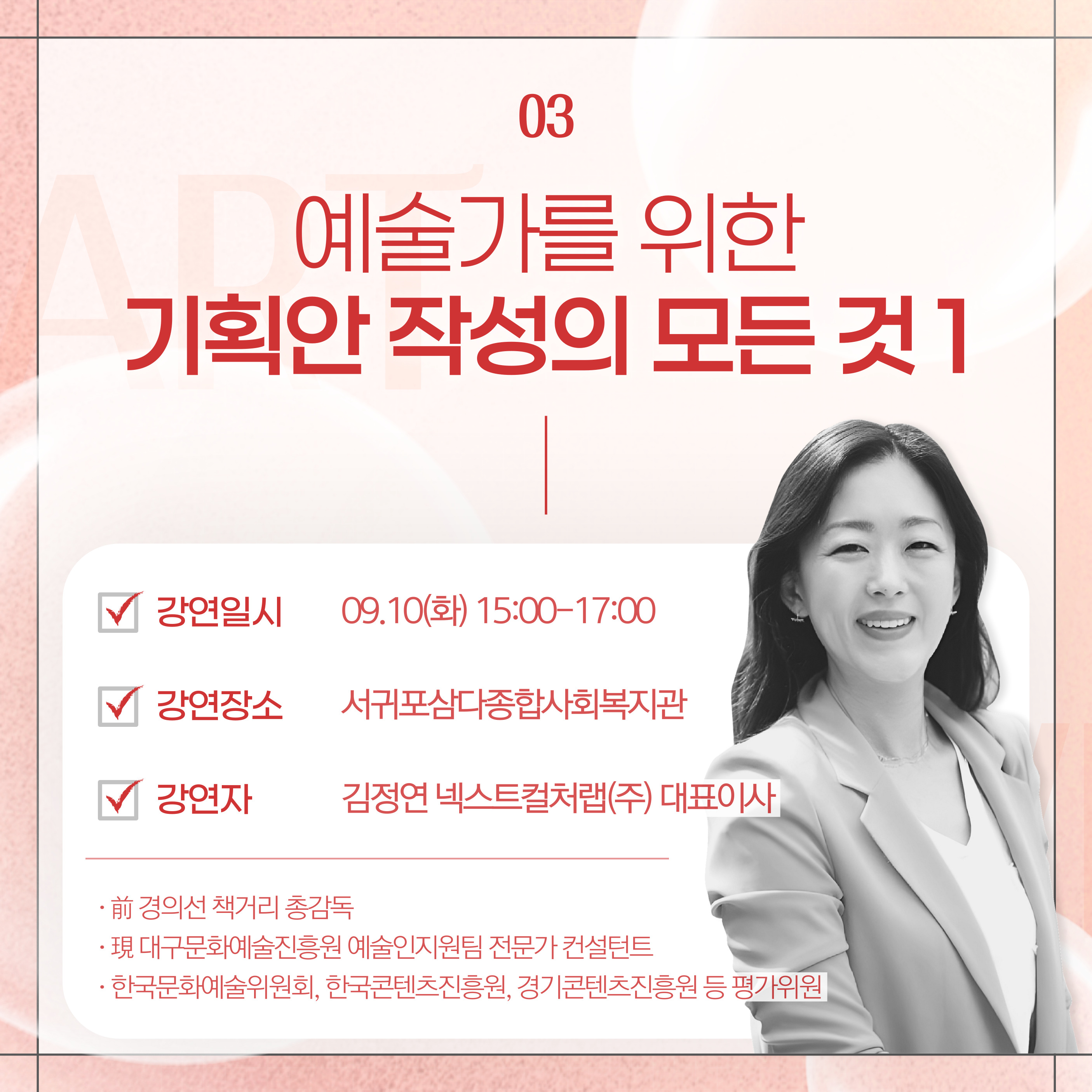 - 대상: 도내 예술가, 예술계 종사자, 문화예술 기획자 등