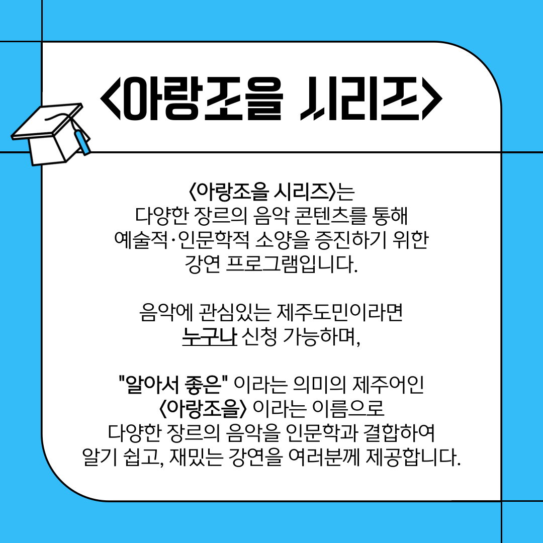 #지역연계음악프로그램운영사업 #아랑조을 #아랑조을국악 #아랑조을뮤지컬 #아랑조을클래식 #아랑조을재즈 #국악 #뮤지컬 #클래식 #재즈 #예술교육 #제주음악강연 #제주문화예술재단 #JFAC #제주도민대학 #제주평생교육장학진흥원