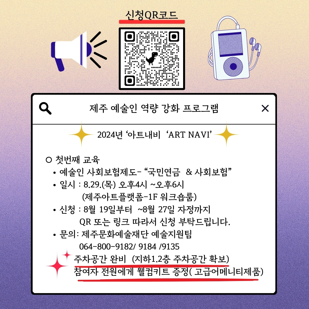 [제주예술인 역량강화 프로그램 아트내비] ART NAVI - 예술인 사회보험제도 교육 (8/29)