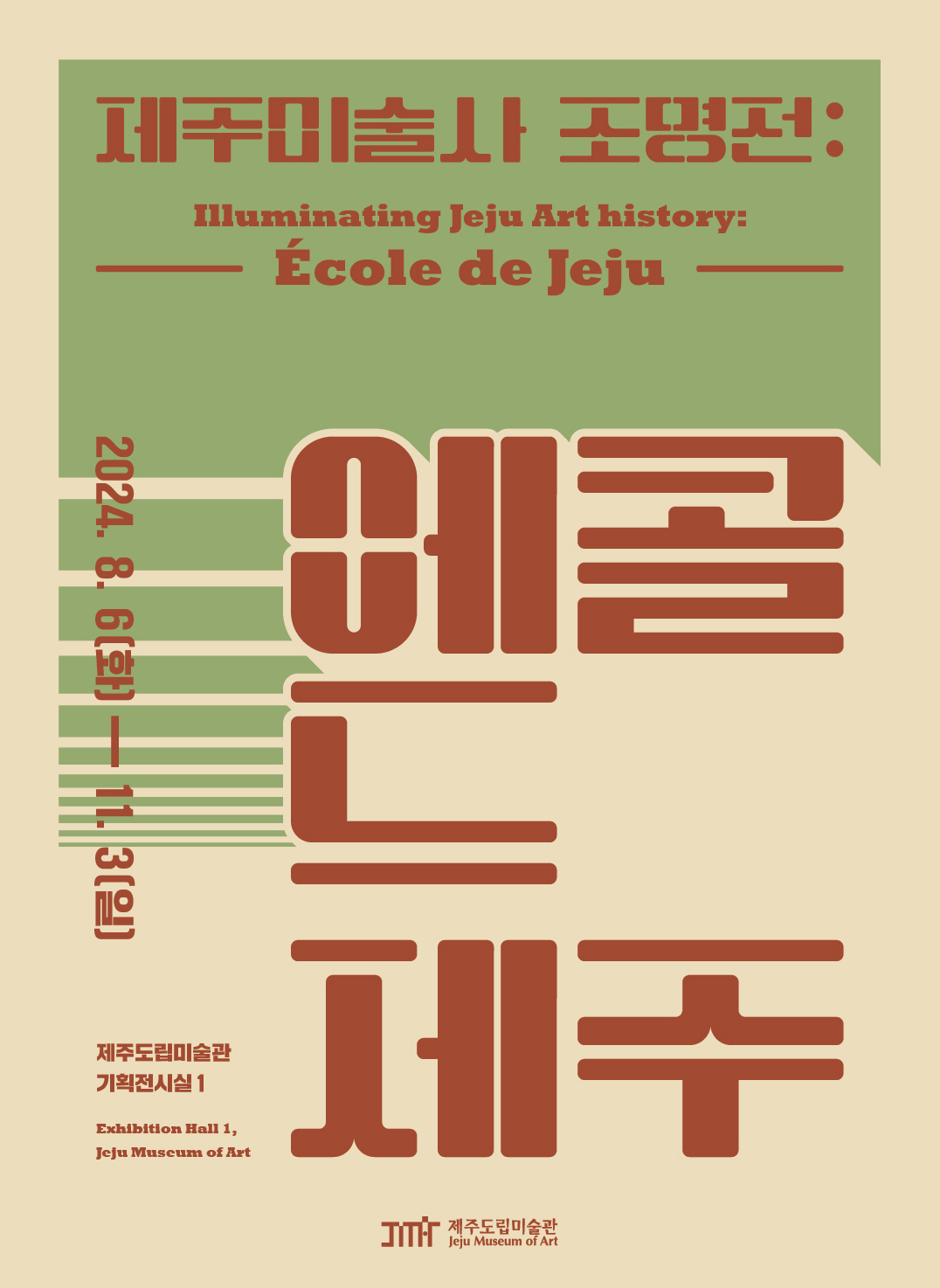 《에콜 드 제주》 전시는 한국전쟁의 발발로 제주로 내려온 피난작가들이 제주화단의 형성기에 어떠한 영향을 미쳤는지를 살펴보고 그 영향을 받은 제주지역의 미술학도들이 고향 또는 타지에서 어떠한 활약을 펼쳤으며, 그로인해 제주미술의 전개가 어떻게 이뤄졌는지를 미술교육의 흐름을 통해 통시적으로 살펴보는 전시입니다.