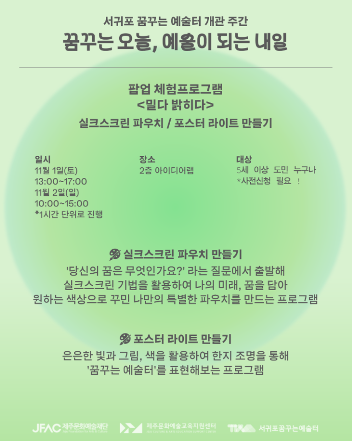 ☀️ 서귀포 꿈꾸는 예술터 개관 주간 <꿈꾸는 오늘, 예술이 되는 내일> ☀️