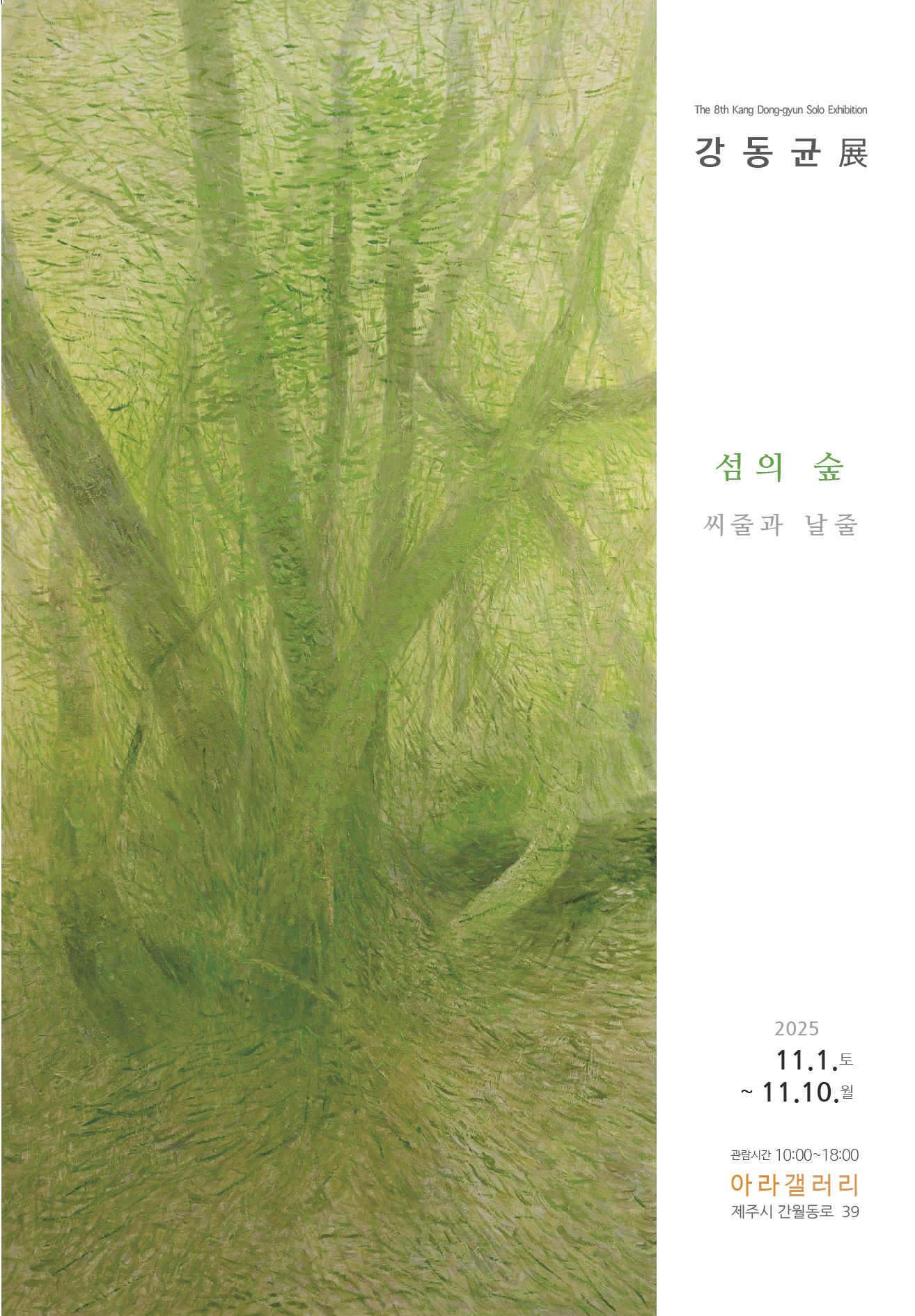섬의 숲-씨줄과 날줄 이라는 주제로 수없이 중첩되는 붓질과 색채가 어우러져  작품으로 형상화 되었다. 자연의 모습 하나 하나 생명을 바라보는 작가의 메세지에 함께 공감하고 영감을 나누기를 바란다.