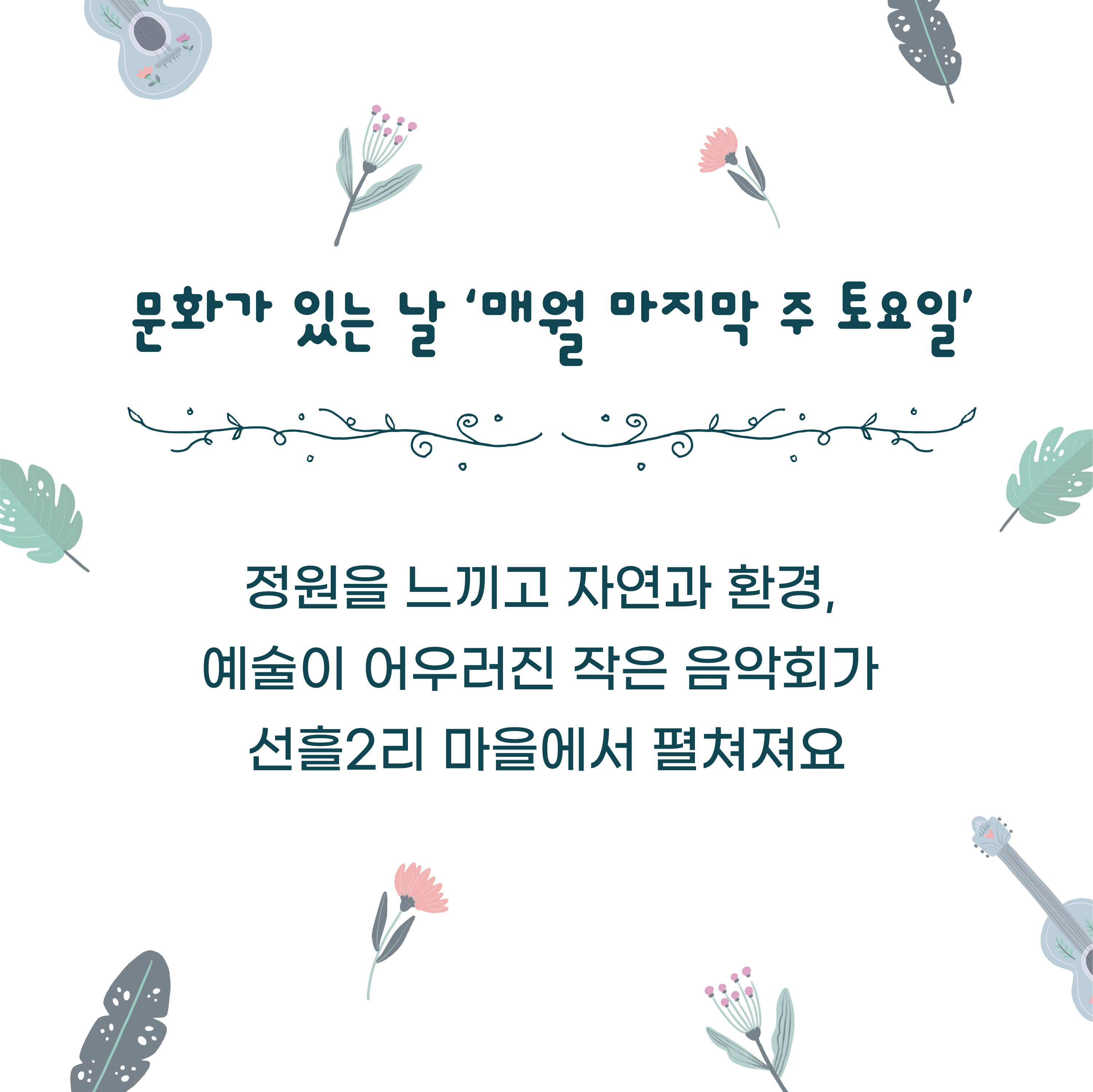정원을 느끼고 예술이 어우러진 작은 음악회가 선흘2리 마을에서 펼쳐져요