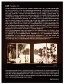 김용원 작가의 작품은 갤러리 앞 소천지를 거닌 후 풍경에 대한 잔상과 여운을 다시 한번 더 되새기게 하며, 갤러리 창을 통해 산수를 감상하는듯한 공간으로 구현해냅니다.
