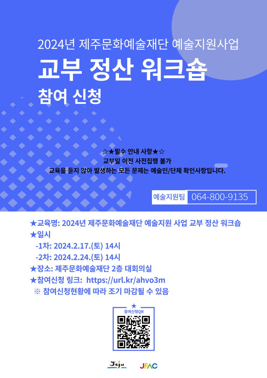 2024년 제주문화예술재단 예술지원사업 교부ㆍ정산 워크숍(1, 2차)