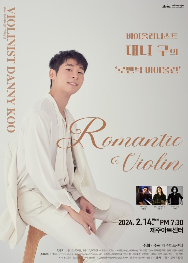 제주아트센터는 2월 14일(수) 오후 7시 30분에 바이올리니스트 대니 구의 <로맨틱 바이올린> 공연을 개최한다.