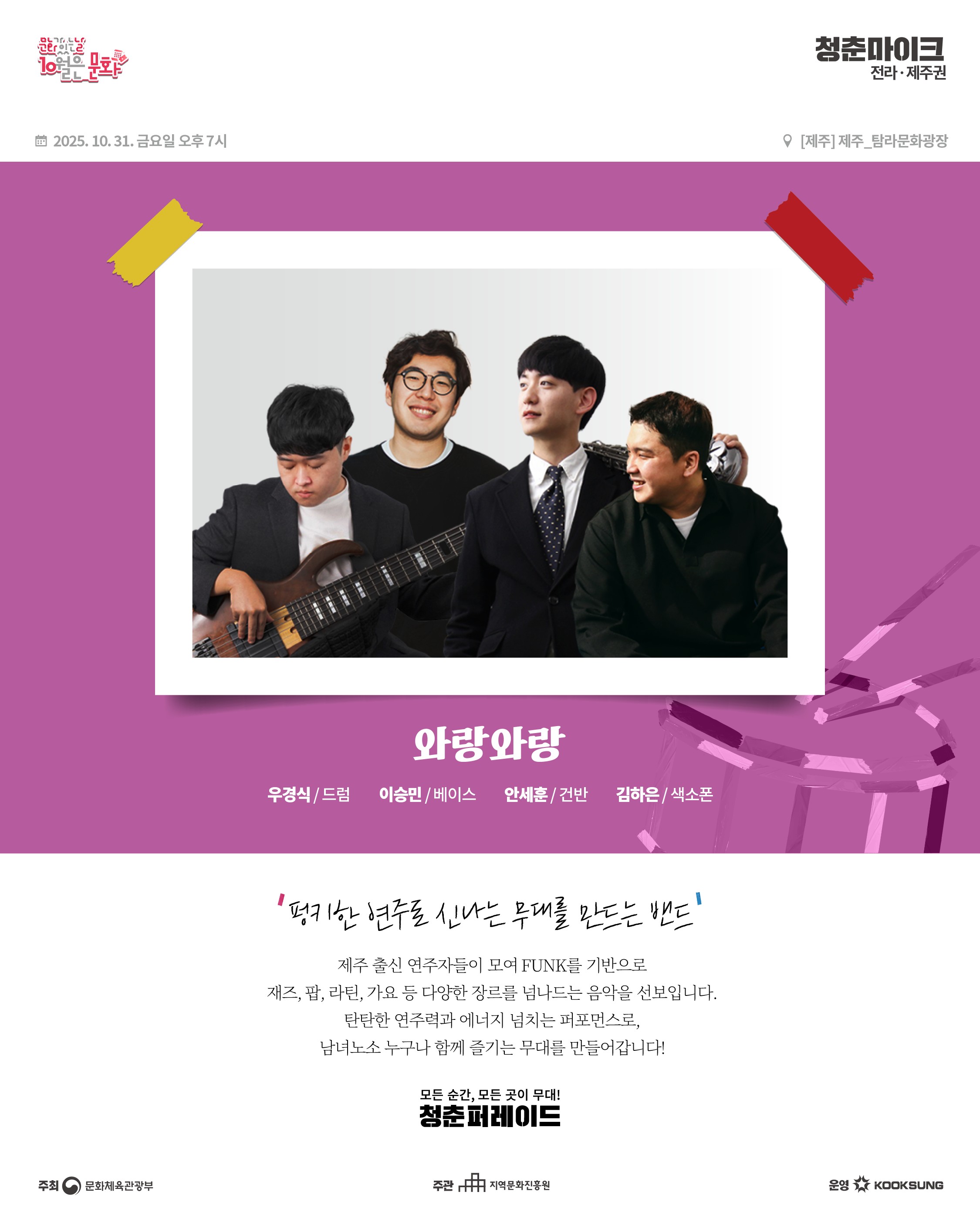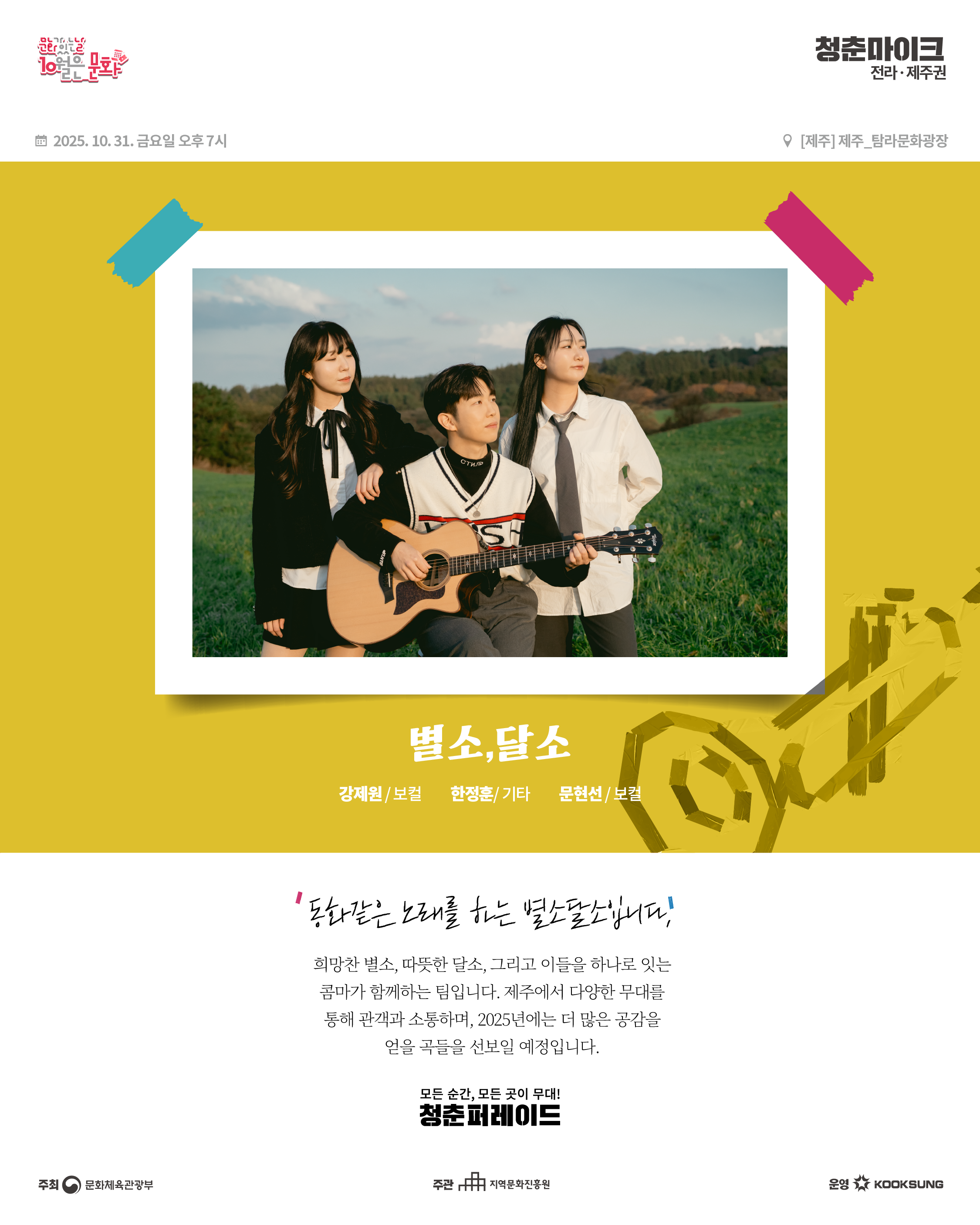 #2025청춘마이크전라제주 #2025청춘마이크 #청춘마이크전라 #청춘마이크제주 #문화가있는날 #문화체육관광부 #지역문화진흥원 #주식회사국성 #청년예술가 #제주도 #제주시 #탐라문화광장