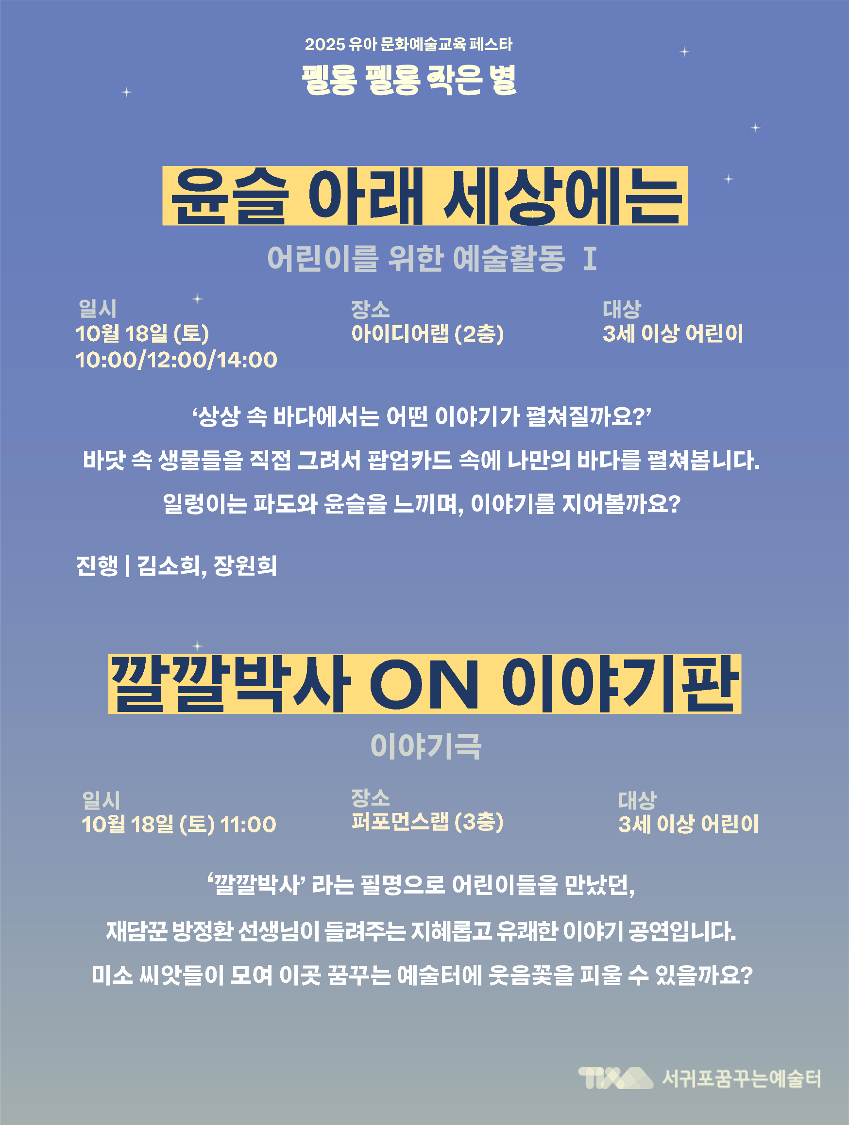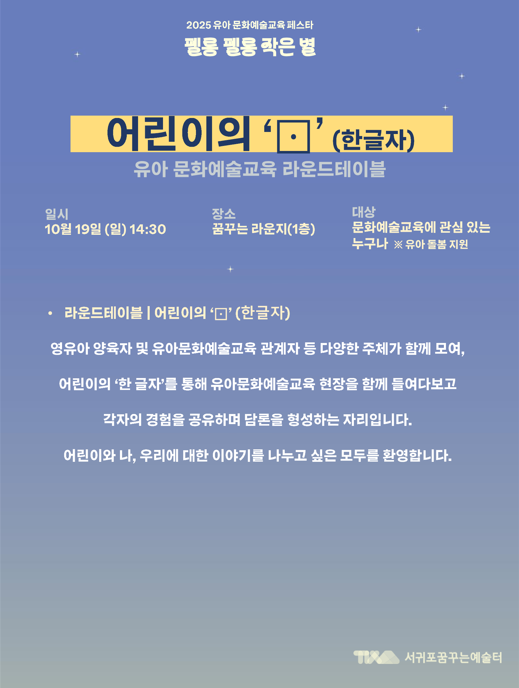 유아기 예술 경험의 중요성을 공유하는 ?2025 유아 문화예술교육 페스타 <펠롱 펠롱 작은 별>?을 아래와 같이 안내드립니다.