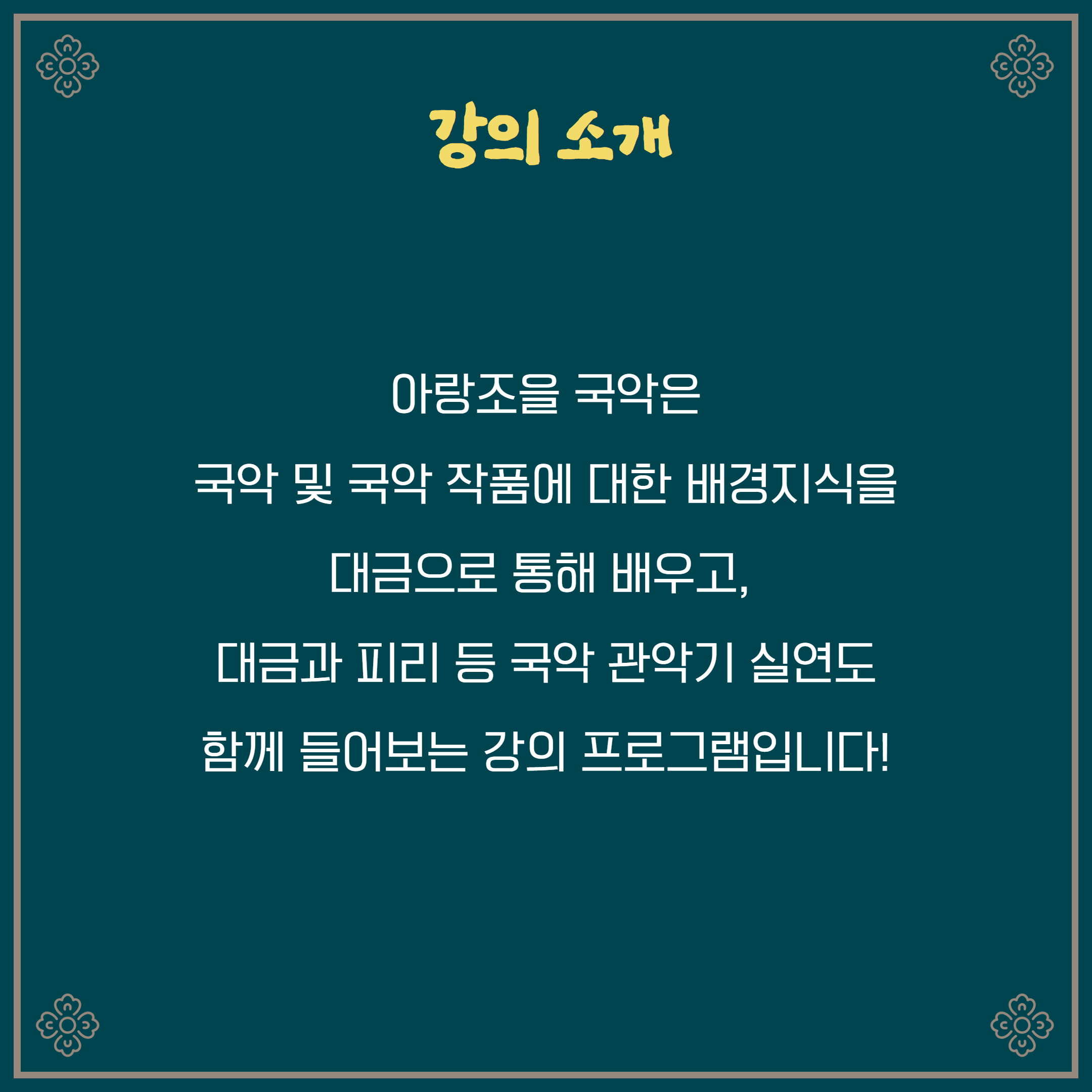 아랑조을 국악은 국악 및 국악 작품에 대한 배경지식을 대금으로 통해 배우고,