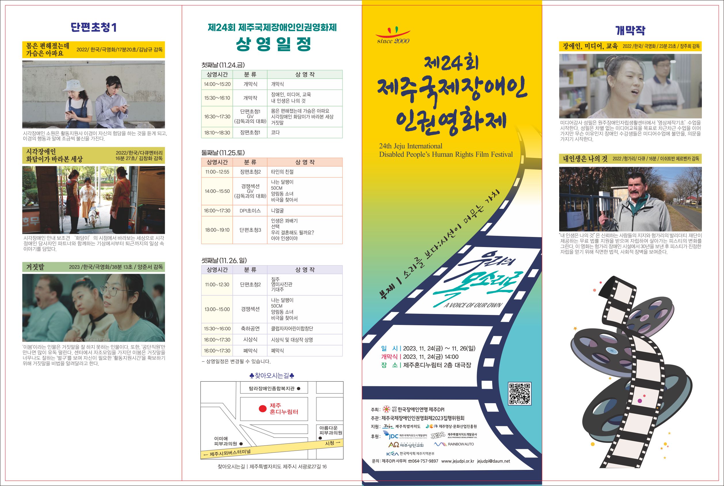 이번 제24회 영화제는 '우리의 목소리로(A VOICE OF OUR OWN)'를 슬로건으로, '소리를 보다:시선이 머무는 가치'를 부제로 장애인의 삶과 사회적 고립, 인권 문제에 집중하는 다큐멘터리 작품 부문과 장편 극영화 작품부문, 독립영화 및 단편영화 부문, 장애인 당사자 콘텐츠 영상부문, 경쟁섹션부문, 인식개선부문 등 총 19편의 영화가 상영된다.