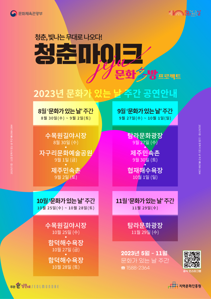 2023년 청춘마이크 제주 문화가 있는 날 주간 공연 안내