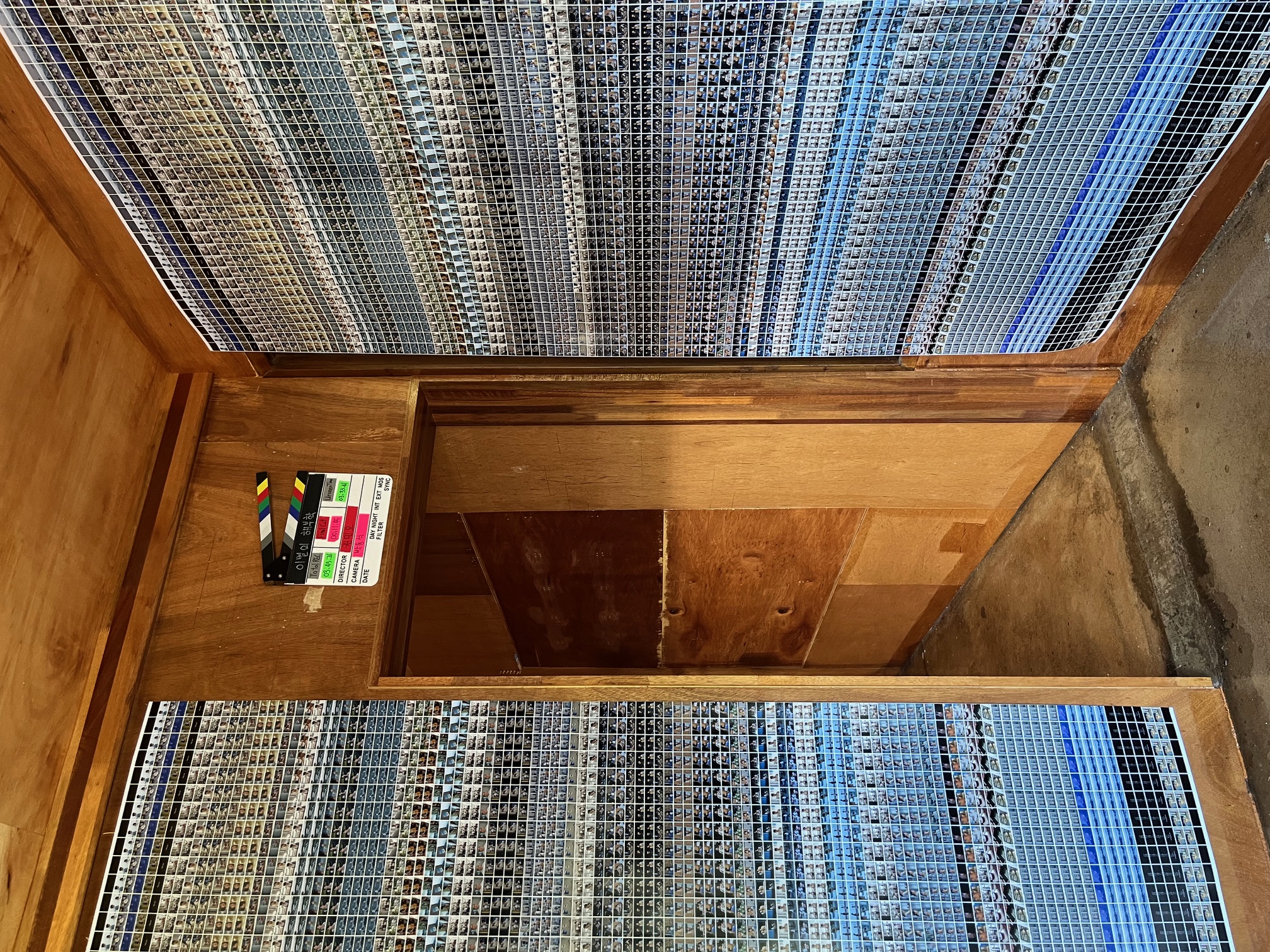 - 작가는 “영화를 찍으면서 과거와 달리 현재는 모든 것이 디지털로만 존재하는 듯한 느낌을 받았습니다. 이 전시는 영화가 단순히 무형의 데이터가 아니라, 재조합의 과정과 소유하고자 하는 욕망에서 만들어진 실체 있는 것임을 실험하고 확인하는 작업입니다. 영화를 구성하는 요소들을 분해하고 시각화하여, 다시 물질성을 부여하려는 시도를 담았습니다.” 라고 말한다.