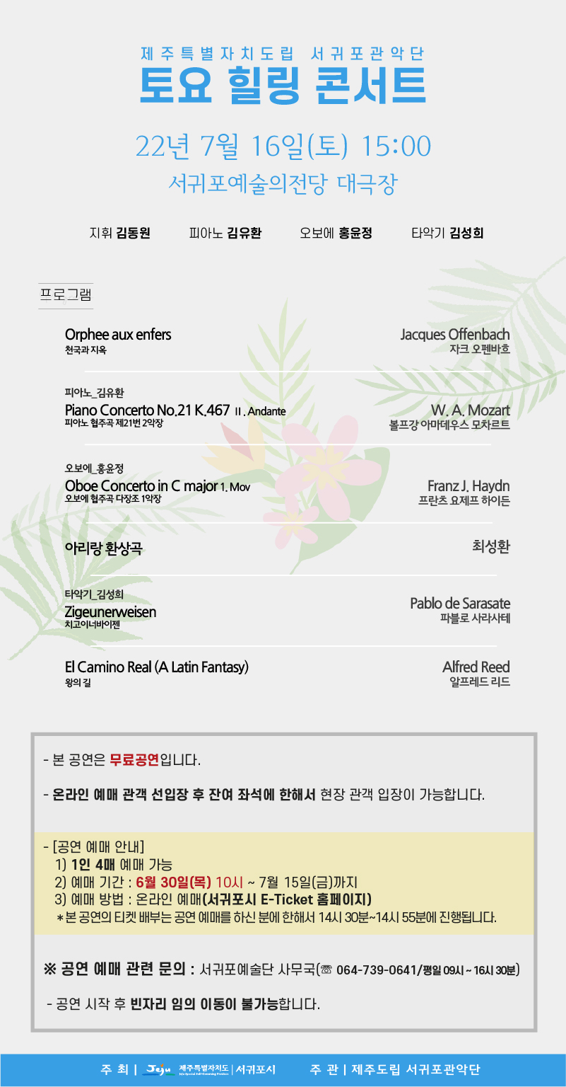 제주특별자치도립 서귀포관악단 7월 토요 힐링 콘서트
