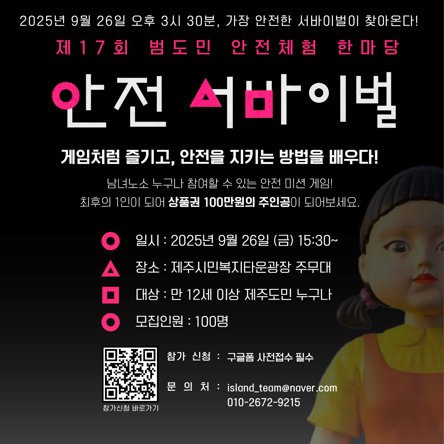 오직 제17회 범도민 안전체험 한마당에서만 경험할 수 있는 다양한 프로그램과 안전 서바이벌을 함께해요!