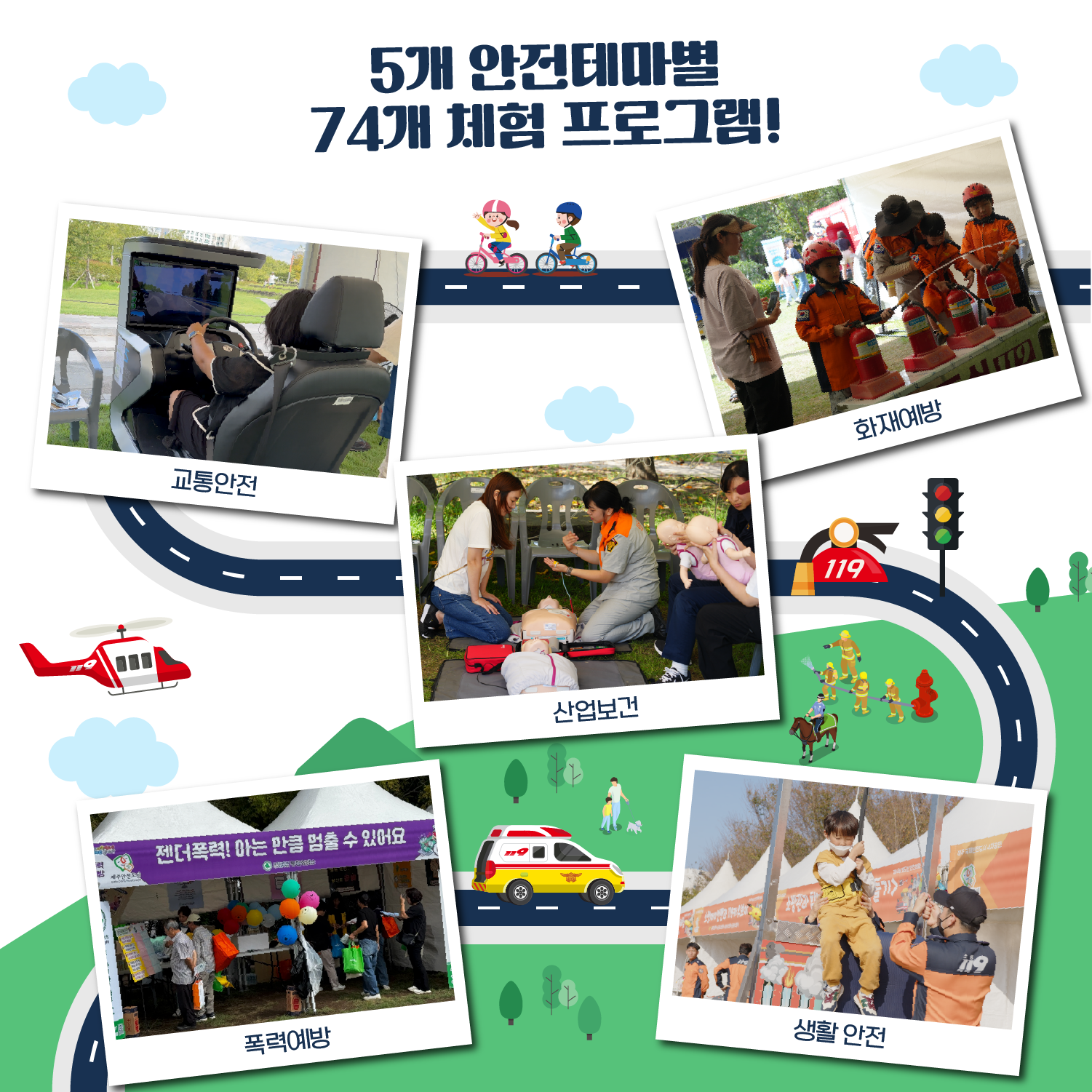 5대 안전 테마(교통안전, 화재예방, 산업보건, 폭력예방, 생활안전) 74개 체험 프로그램과