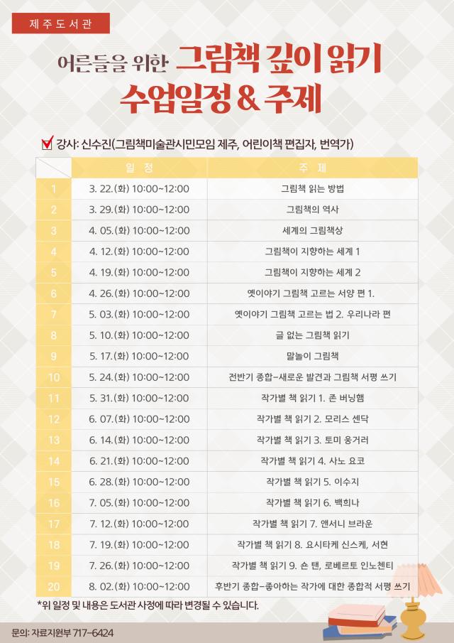 참가신청 : 3.11.(금) 10시 ~ 제주도서관 홈페이지 -> 프로그램 신청하기