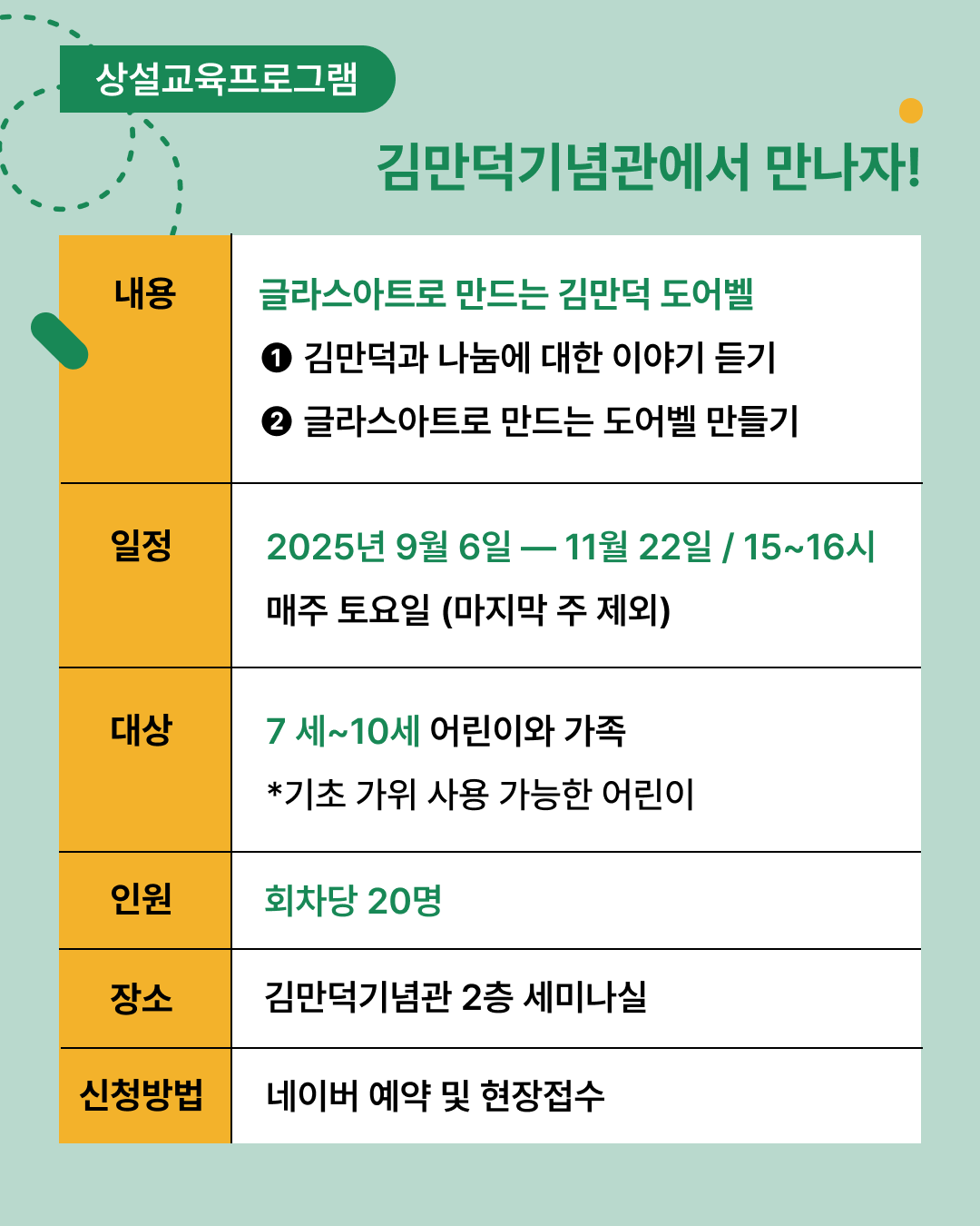 2025. 9. 6 ~ 11. 22 매주 토요일 (마지막 주 제외)