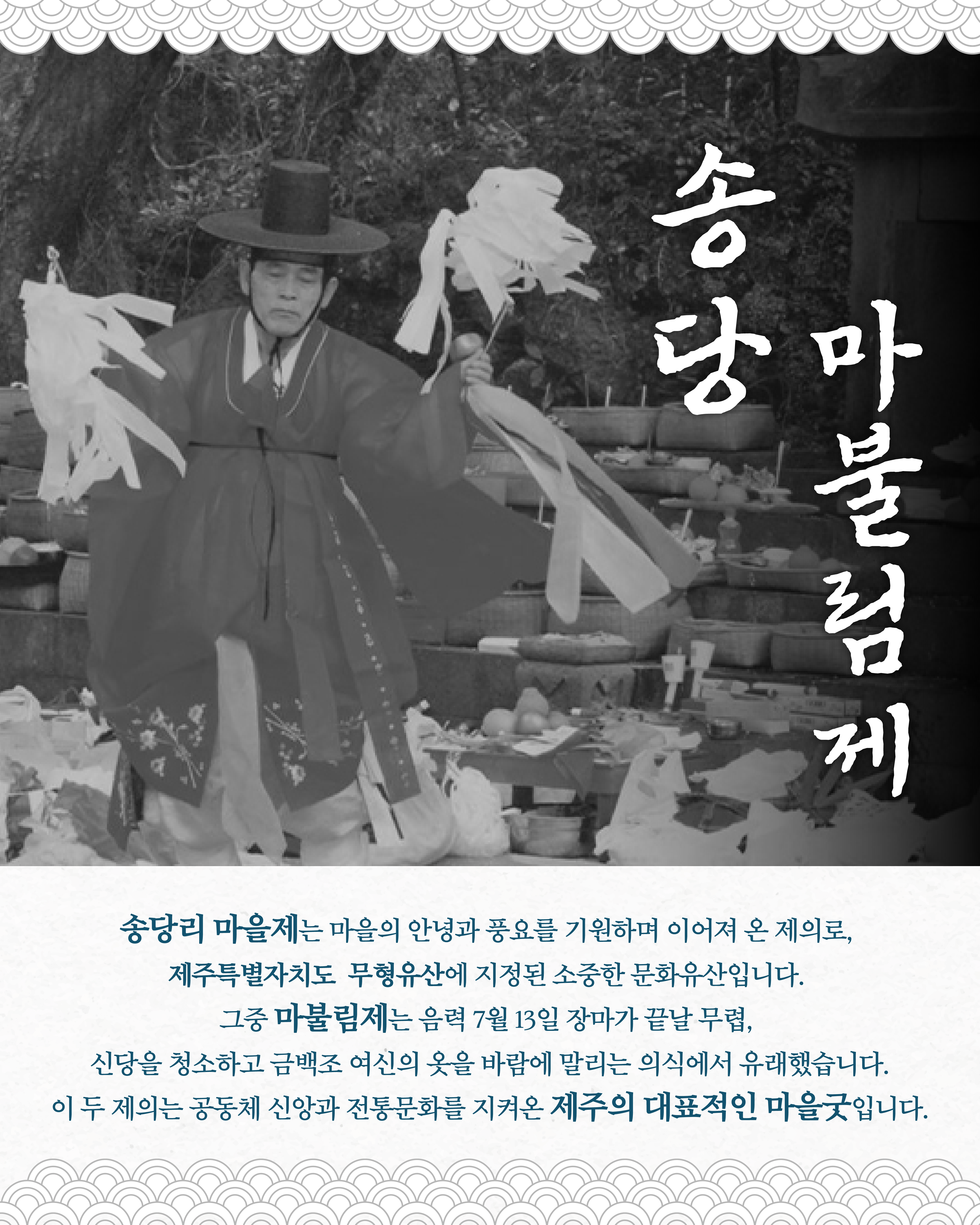 • 주소 (63624) 제주특별자치도 서귀포시 표선면 서성일로 20 송당리 송당본향당 ▶ 성읍민속마을 오메기술