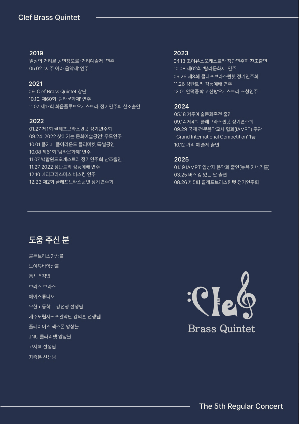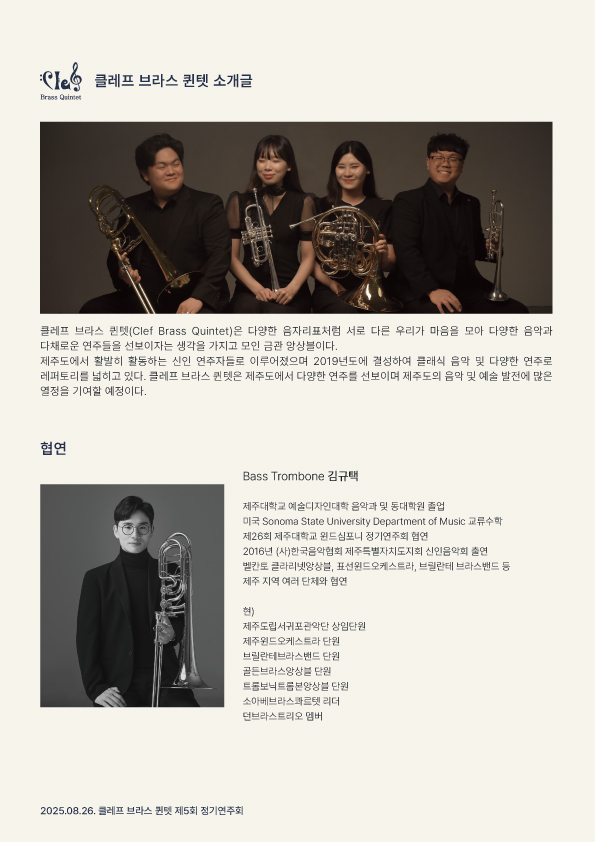 - 인스타그램 https://www.instagram.com/clef_brass_quintet/?igsh=MXd6c2R2cmg3a2k2cA%3D%3D#