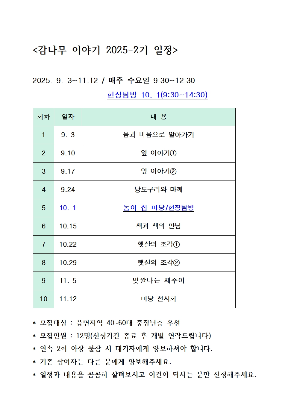 매주 수요일 9:30~12:30