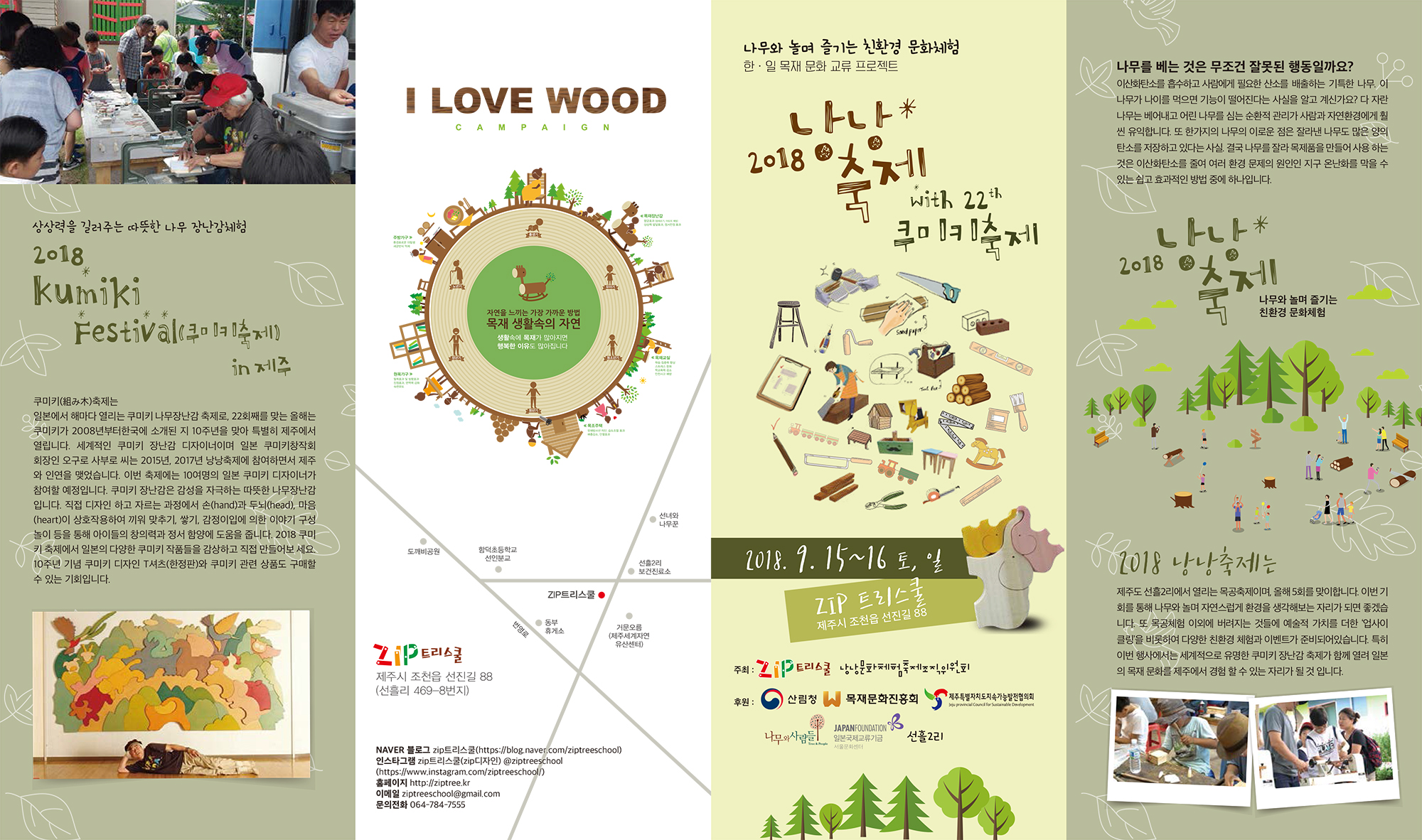 □ 한편, 친환경 목공체험학교 ZIP트리스쿨은 목공체험 지도사 양성 교육원(산림청 산하 목재문화진흥원)으로 지정된 곳이며, 전국 최초로 목공관련 청소년 수련활동인증 프로그램을 인증 받은 제주도내 최대 목공체험 전문기관이다.