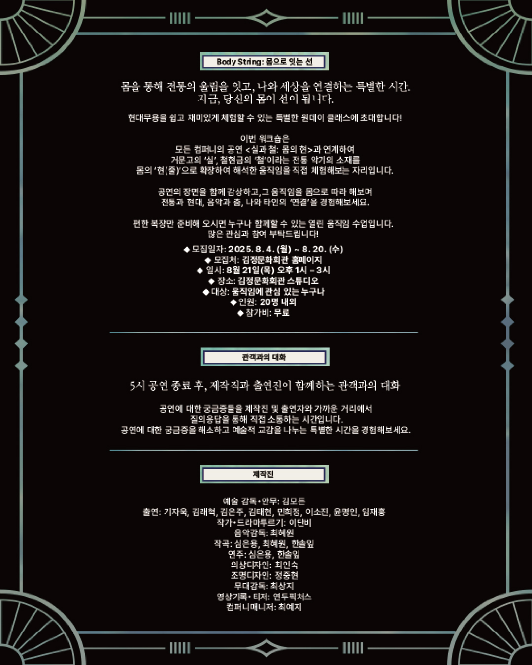 모든 컴퍼니의 공연 <실과 철: 몸의 현>과 연계하여