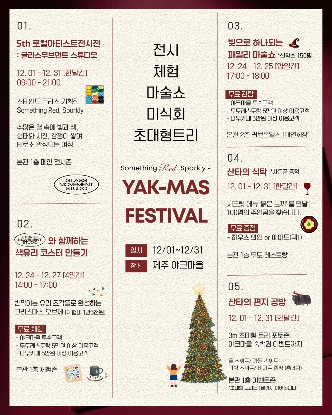 ◗ 내용 : 3m 높이의 초대형 트리 포토존과 야크마을 숙박권 이벤트까지. *초대형 트리는 1월까지 이어집니다.