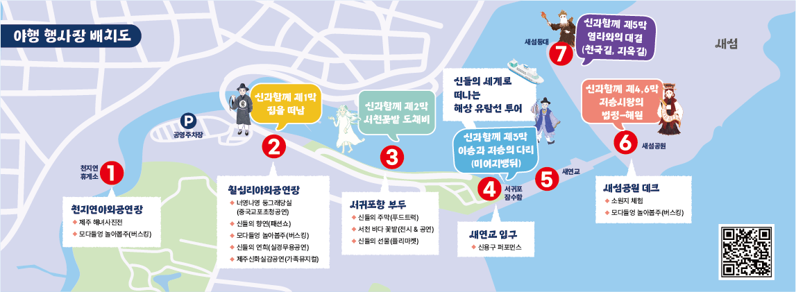 야사(1만 8천 신들의 연희) - 신들의 연희(실경무용공연), 적패지소망 체험, 신과함께 야행 (강림차사 편), 제주신화실감공연(가족뮤지컬)