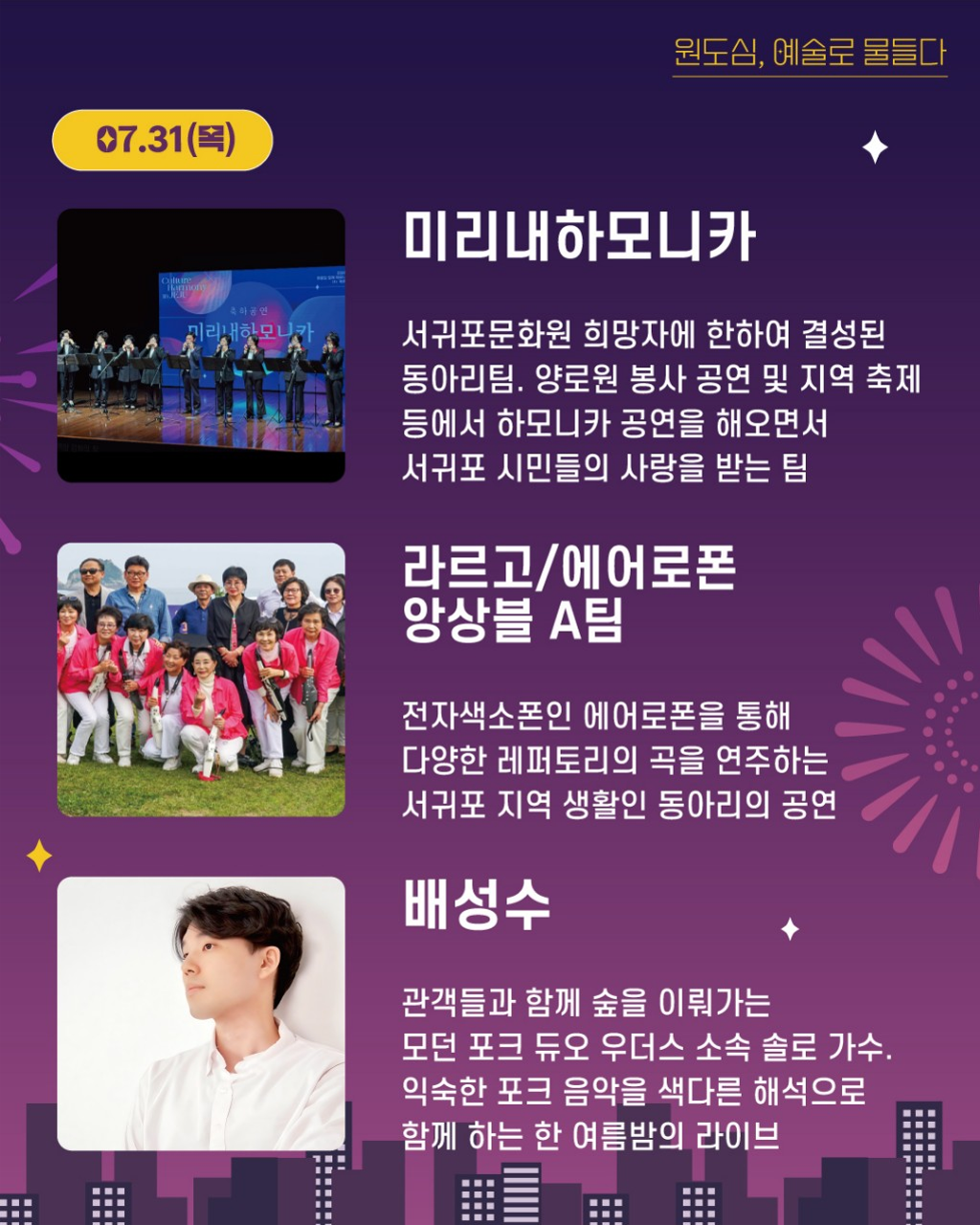 ☆ 주요내용: (19:00~20:00) 지역예술인 및 청소년 동아리 문화예술공연