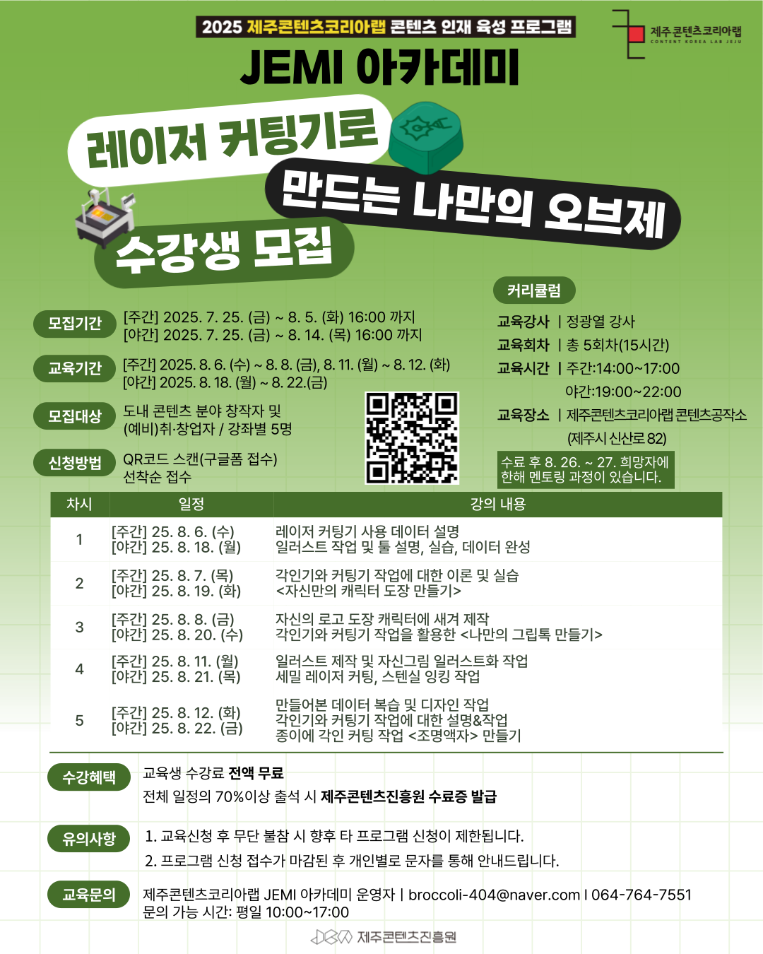 [제주콘텐츠진흥원] 2025 JEMI 아카데미 - 레이저커팅기로 만드는 나만의 오브제