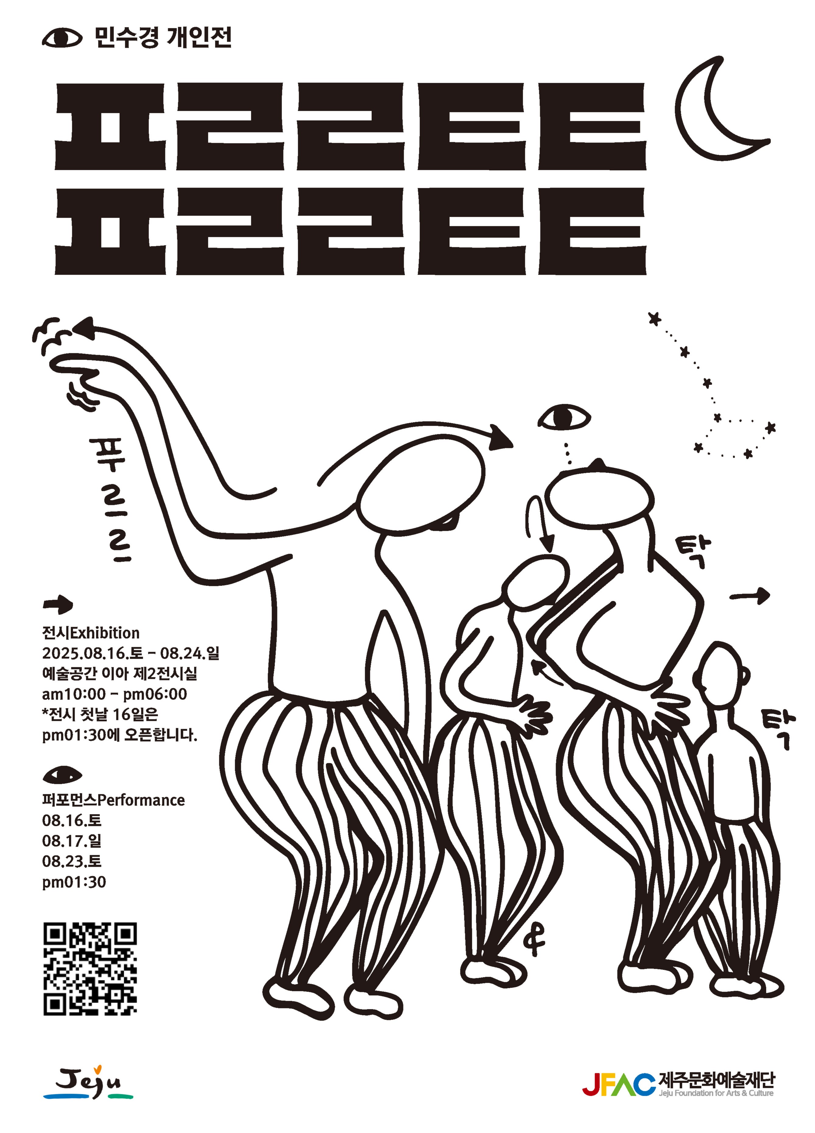 전시 제목 <푸르르탁탁푸르르탁탁>은 제주 서귀포 법환동 일대에서 전해 내려오는 대장간 노동요 ‘똑딱 불미소리’를 현대적 시선으로 재해석한 결과물이다. 이 노동요는 작은 대장간에서 망치질의 리듬과 함께 불렸던 노래로, 반복적이고 단순한 음율 속 노동의 고단함과 일상의 숨결이 깊이 스며 있다.