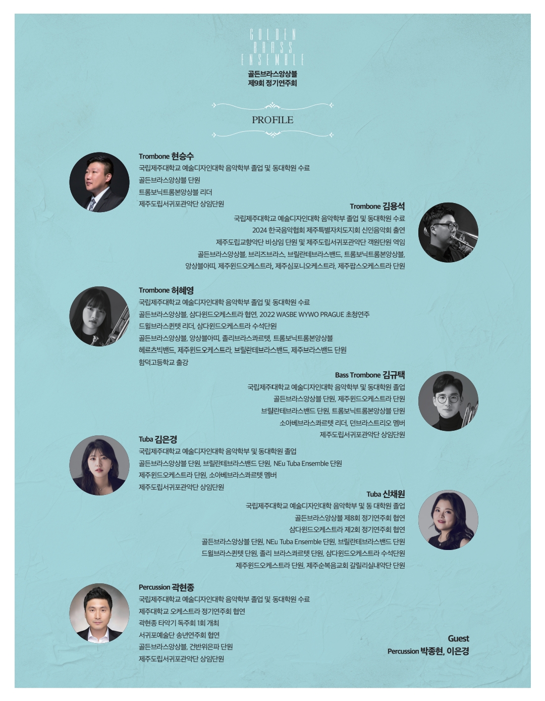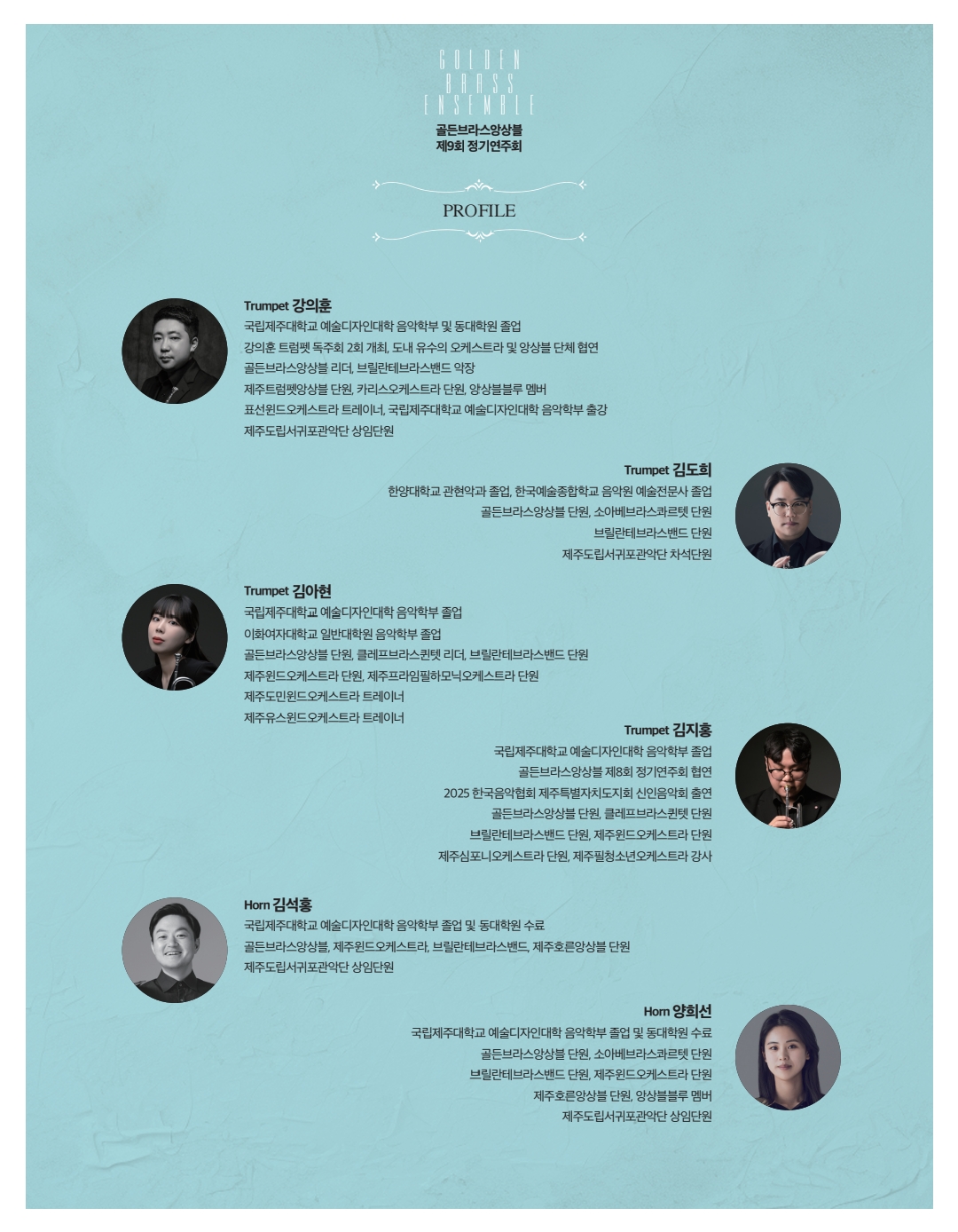 이번 연주회는 ‘전쟁과 평화’라는 주제를 바탕으로, 금관 악기의 강렬하고도 따뜻한 음색을 통해 전쟁의 고통과 절망, 그리고 그 속에서 피어나는 희망과 평화를 표현하고자 합니다.